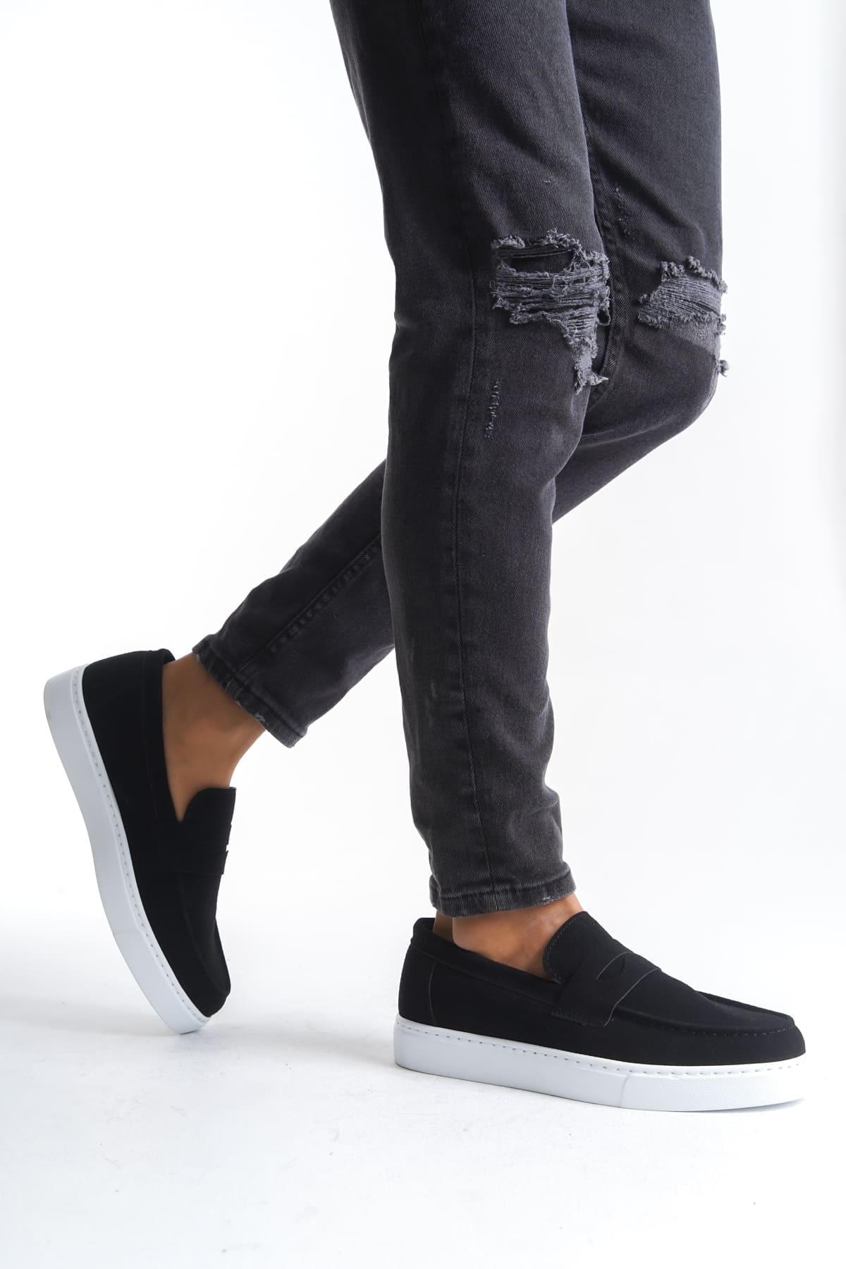 Estilo X Siyah Süet Bağcıksız Erkek Ayakkabı - Şıklığın Klasik Hali