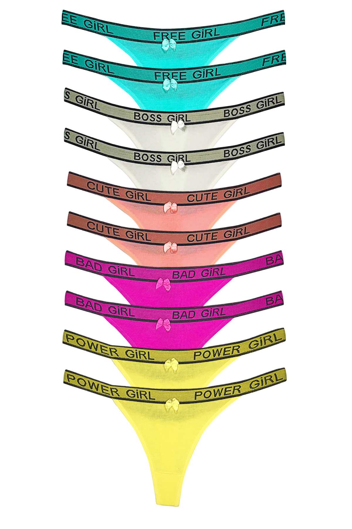 10 Adet Beli Yazılı Pamuk Kadın Tanga String Külot