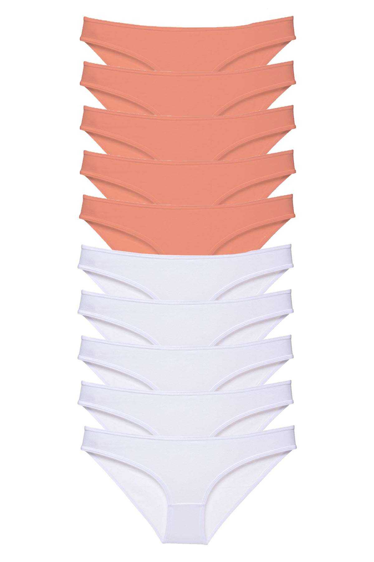 - 10 Adet Eko Set Likralı Kadın Slip Külot Pudra Beyaz
