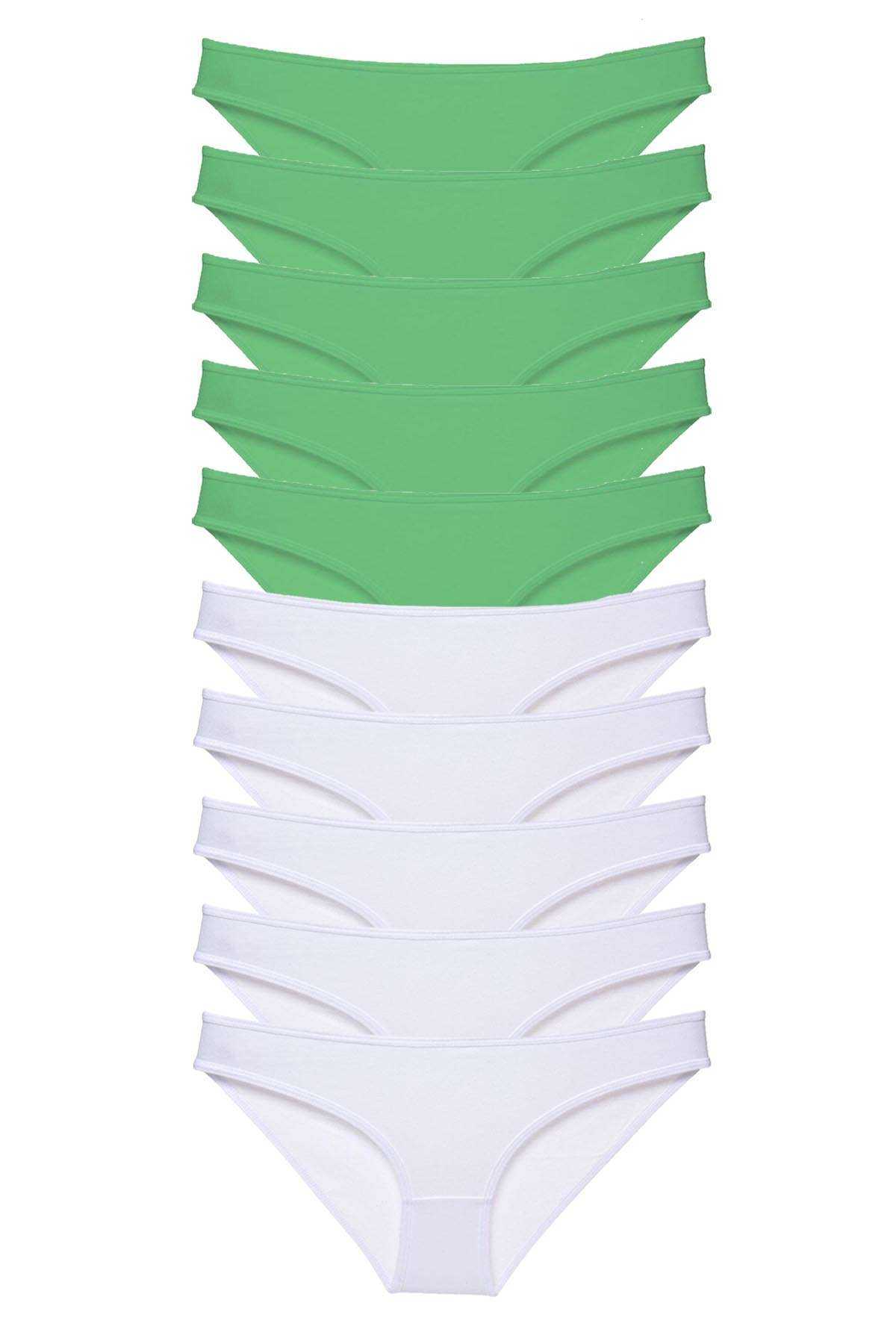 - 10 Adet Eko Set Likralı Kadın Slip Külot Yeşil Beyaz
