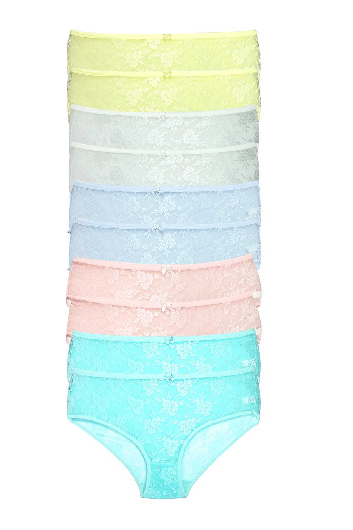 10 Adet Kadın Komple Tül Dantel Bato Külot