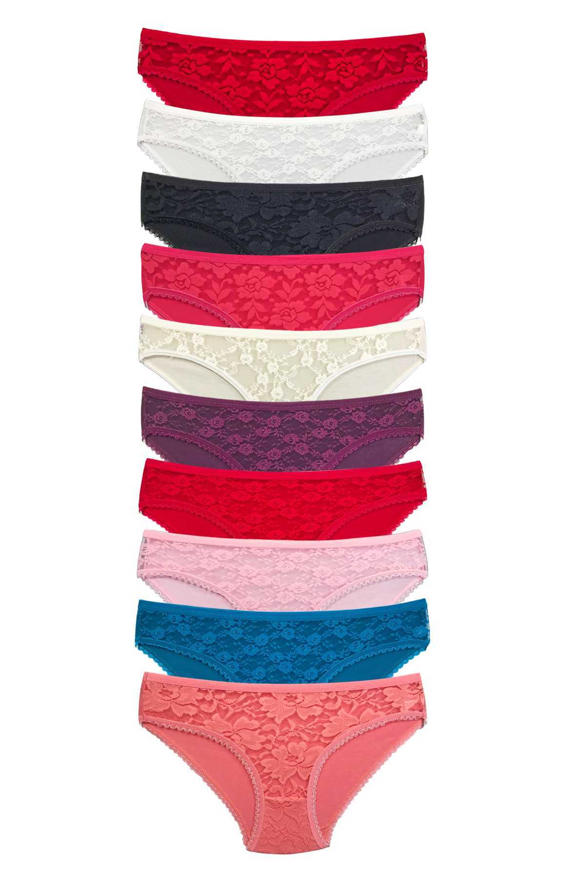 - 10 Adet Önü Dantelli Transparan Kadın Slip Külot S231