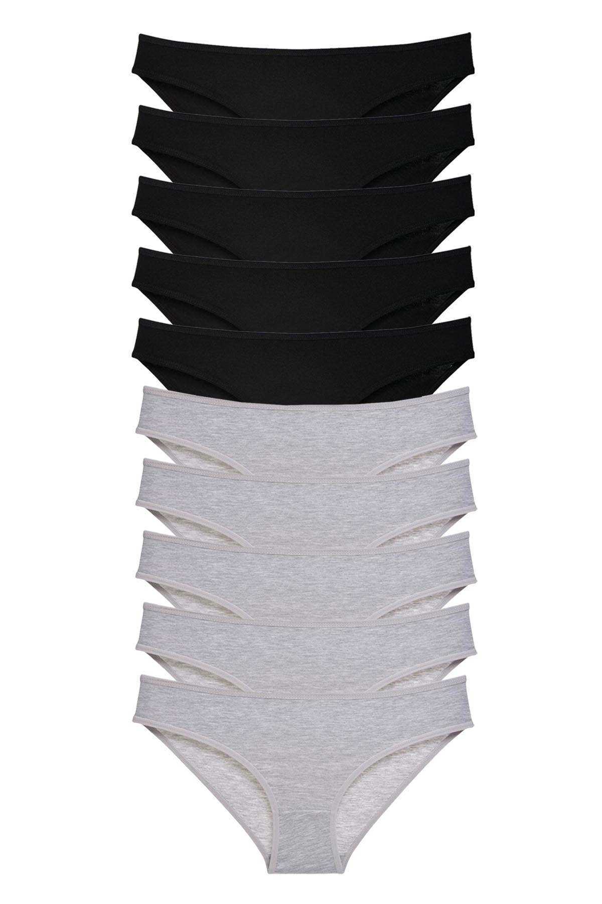 - 10 Adet Süper Eko Set Likralı Kadın Slip Külot Siyah Gri