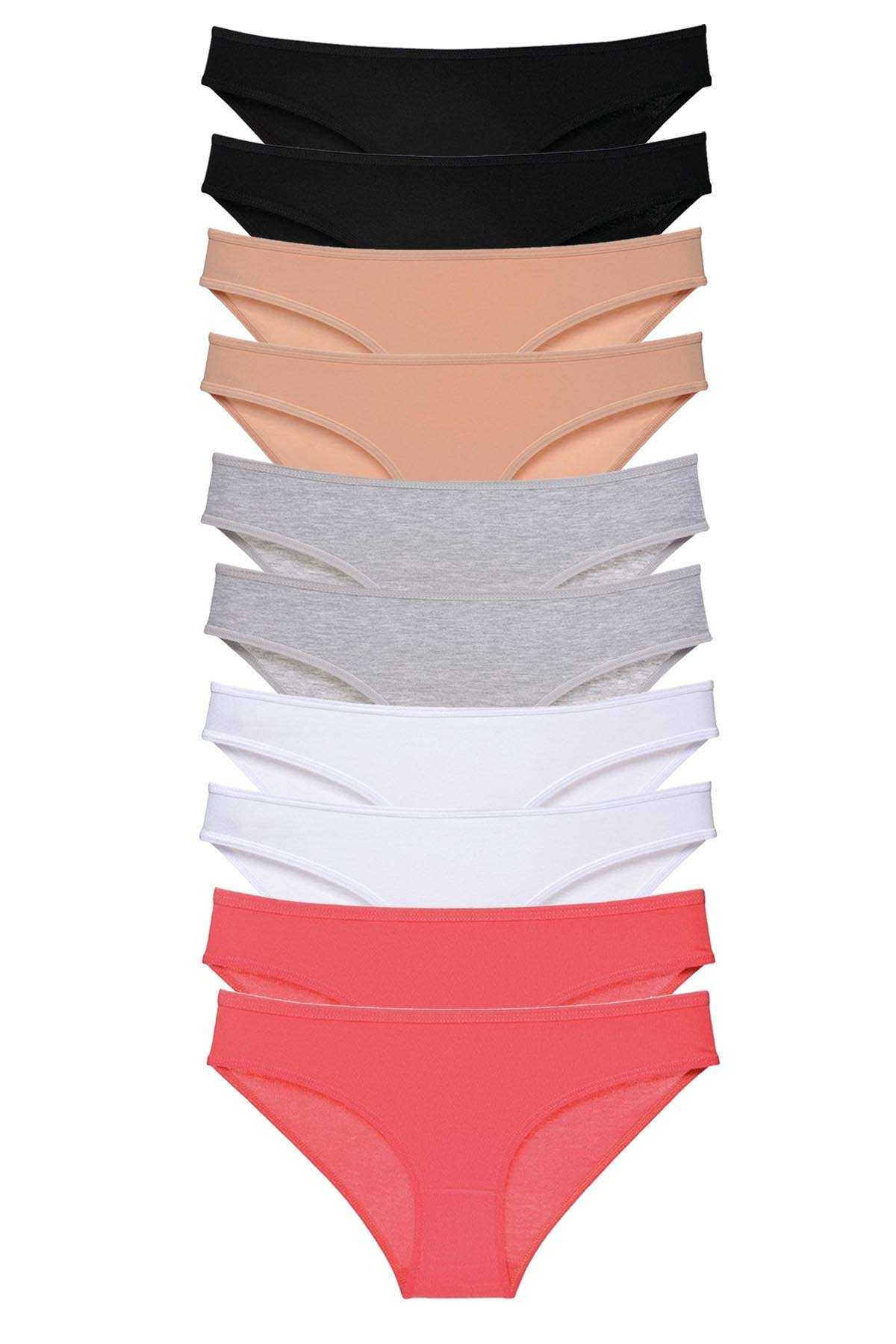 10 Adet Süper Eko Set Likralı Kadın Slip Külot Siyah Ten Gri Beyaz Fuşya