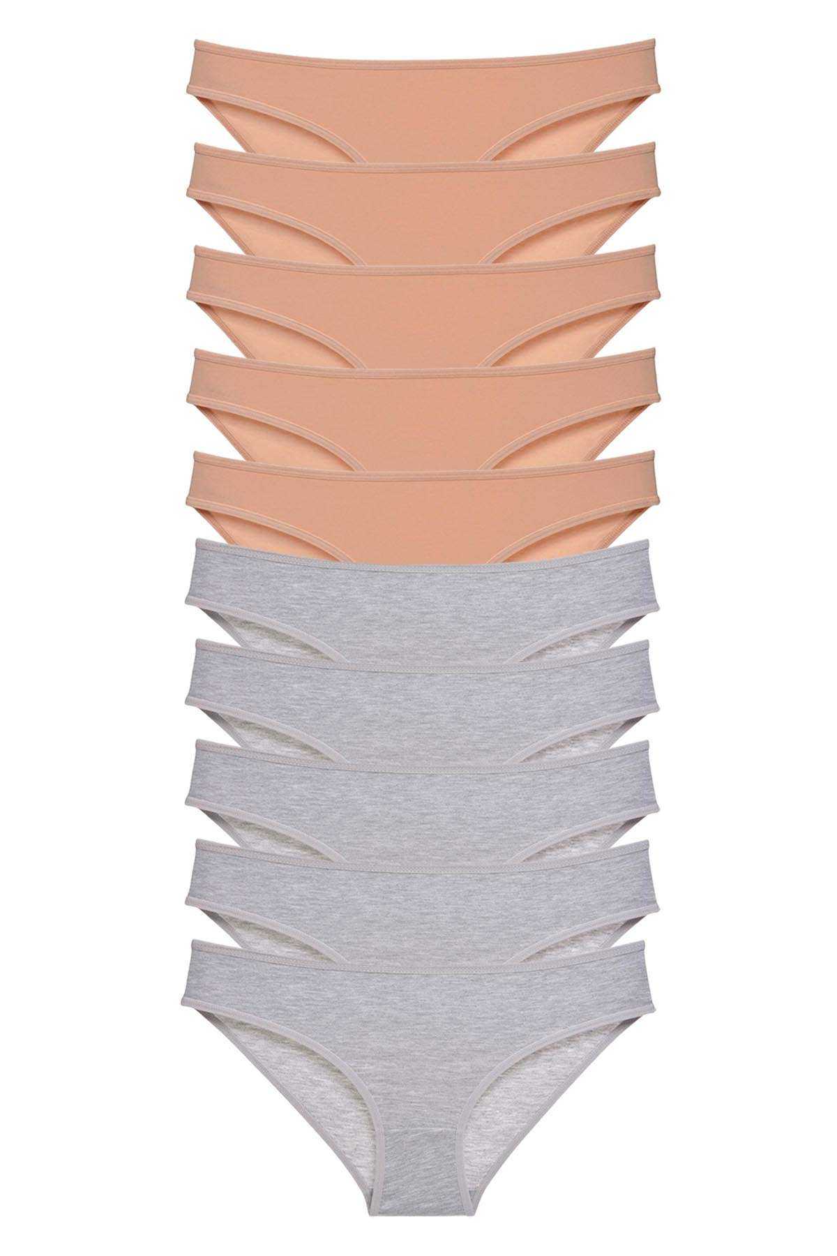 - 10 Adet Süper Eko Set Likralı Kadın Slip Külot Ten Gri