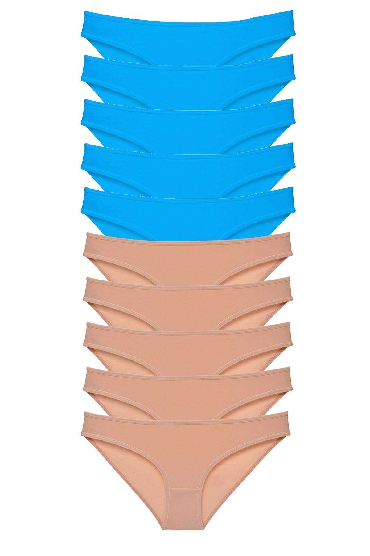 - 10 Adet Süper Eko Set Likralı Kadın Slip Külot Ten Mavi