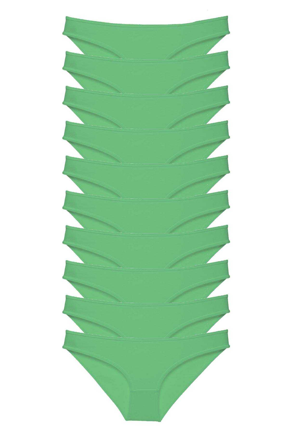 - 10 Adet Süper Eko Set Likralı Kadın Slip Külot Yeşil