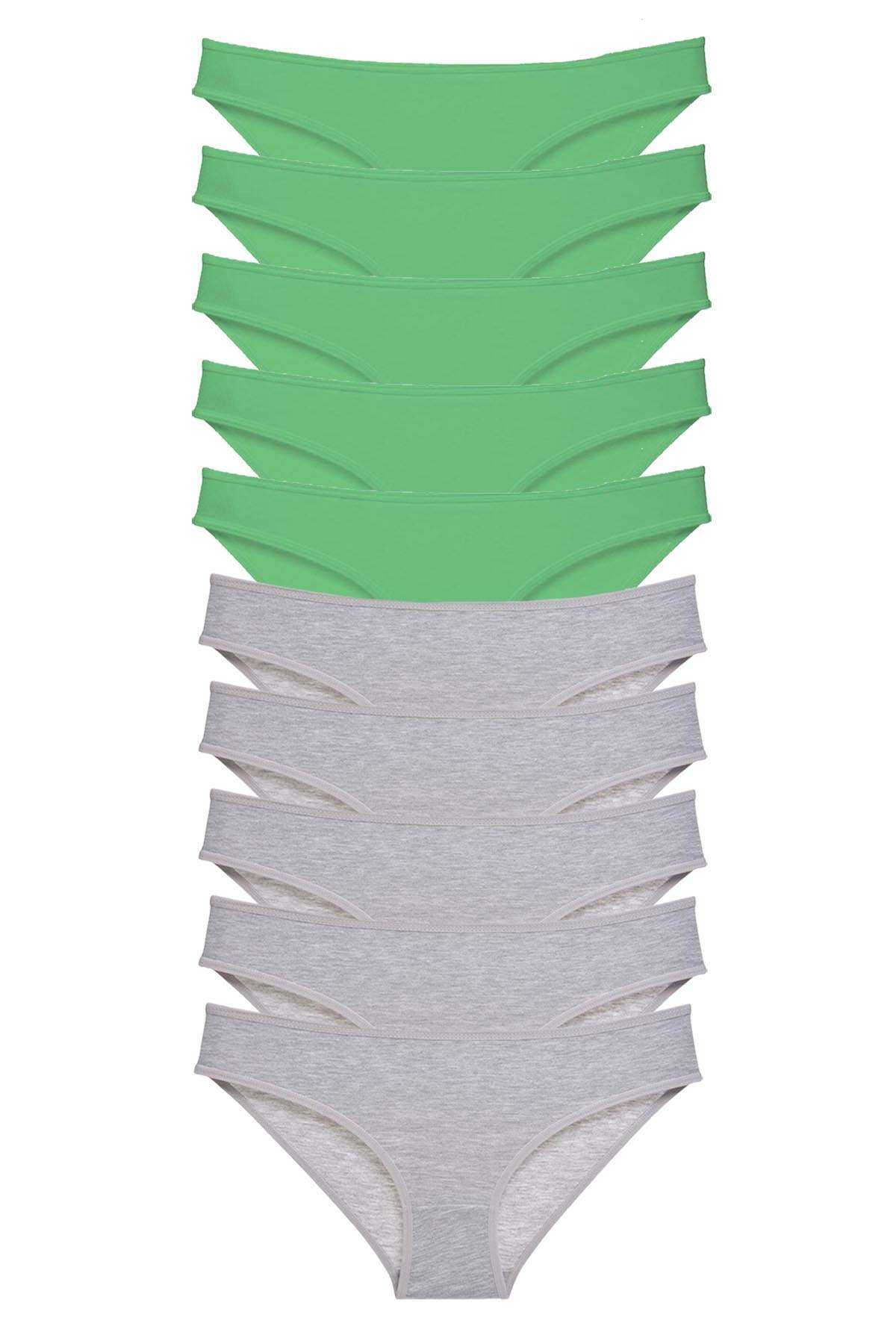 - 10 Adet Süper Eko Set Likralı Kadın Slip Külot Yeşil Gri