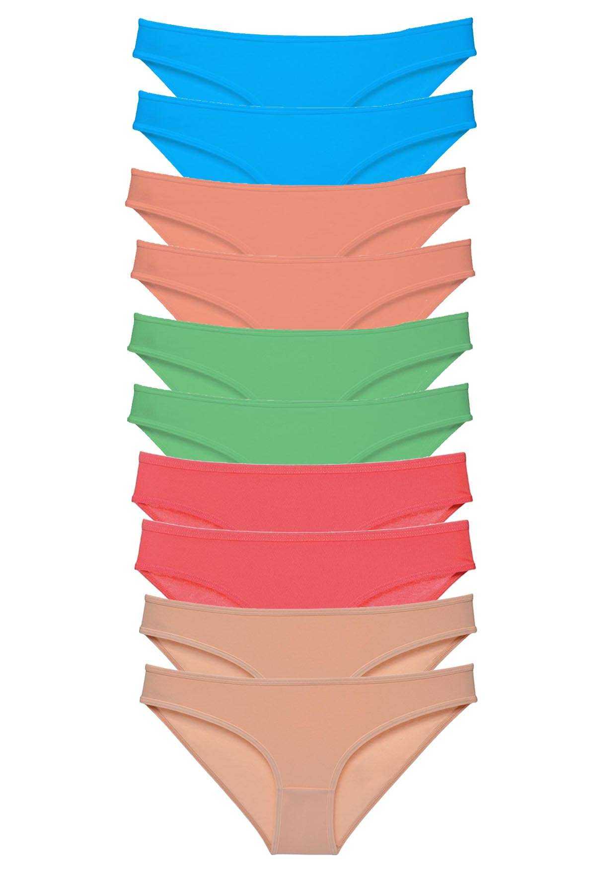 10 Adet Süper Eko Set Likralı Kadın Slip Ten Pudra Yeşil Fuşya Mavi