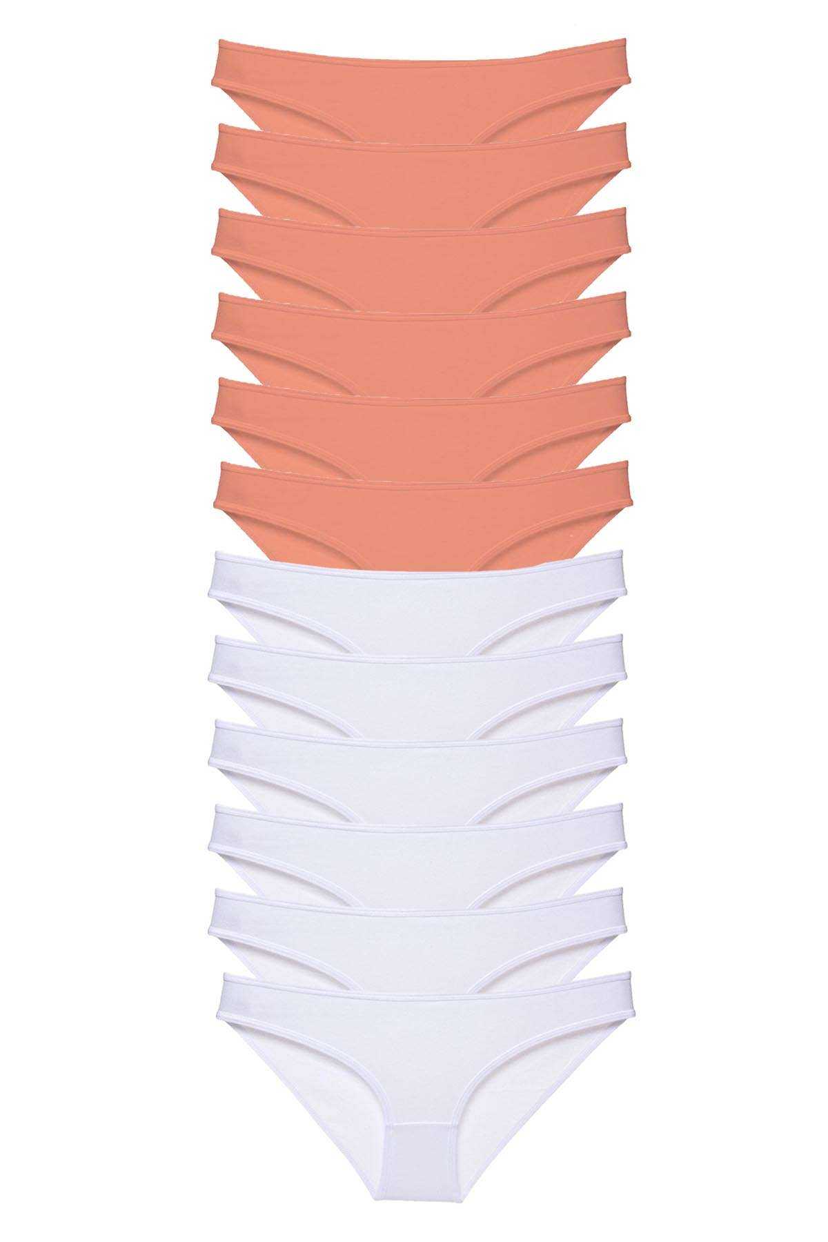 - 12 Adet Eko Set Likralı Kadın Slip Külot Pudra Beyaz