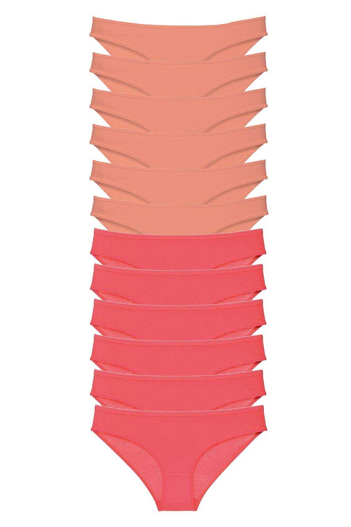 - 12 Adet Eko Set Likralı Kadın Slip Külot Pudra Fuşya