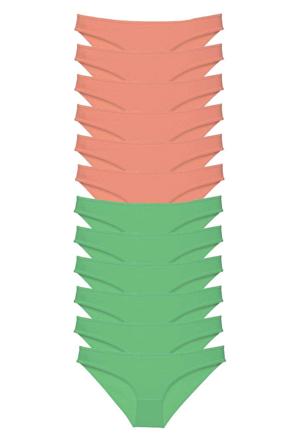 - 12 Adet Eko Set Likralı Kadın Slip Külot Pudra Yeşil