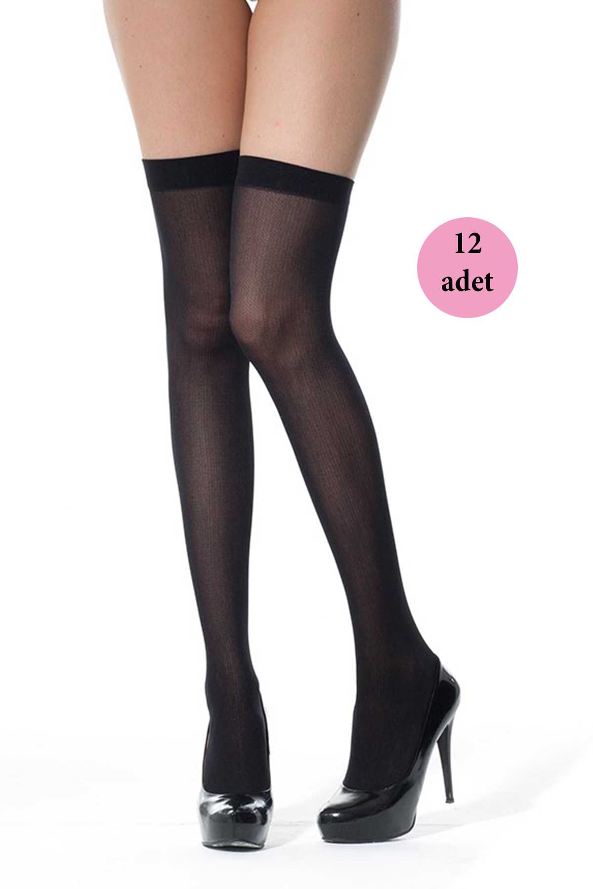 12 Adet Mus Kaçmaz Lastikli Çorap 70 Denye 500 Siyah