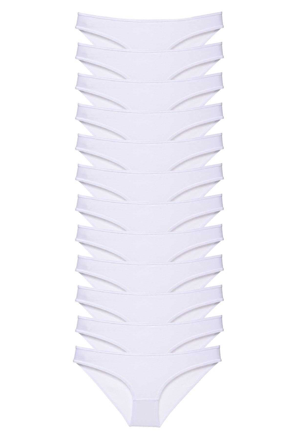 - 12 Adet Süper Eko Set Likralı Kadın Slip Külot Beyaz