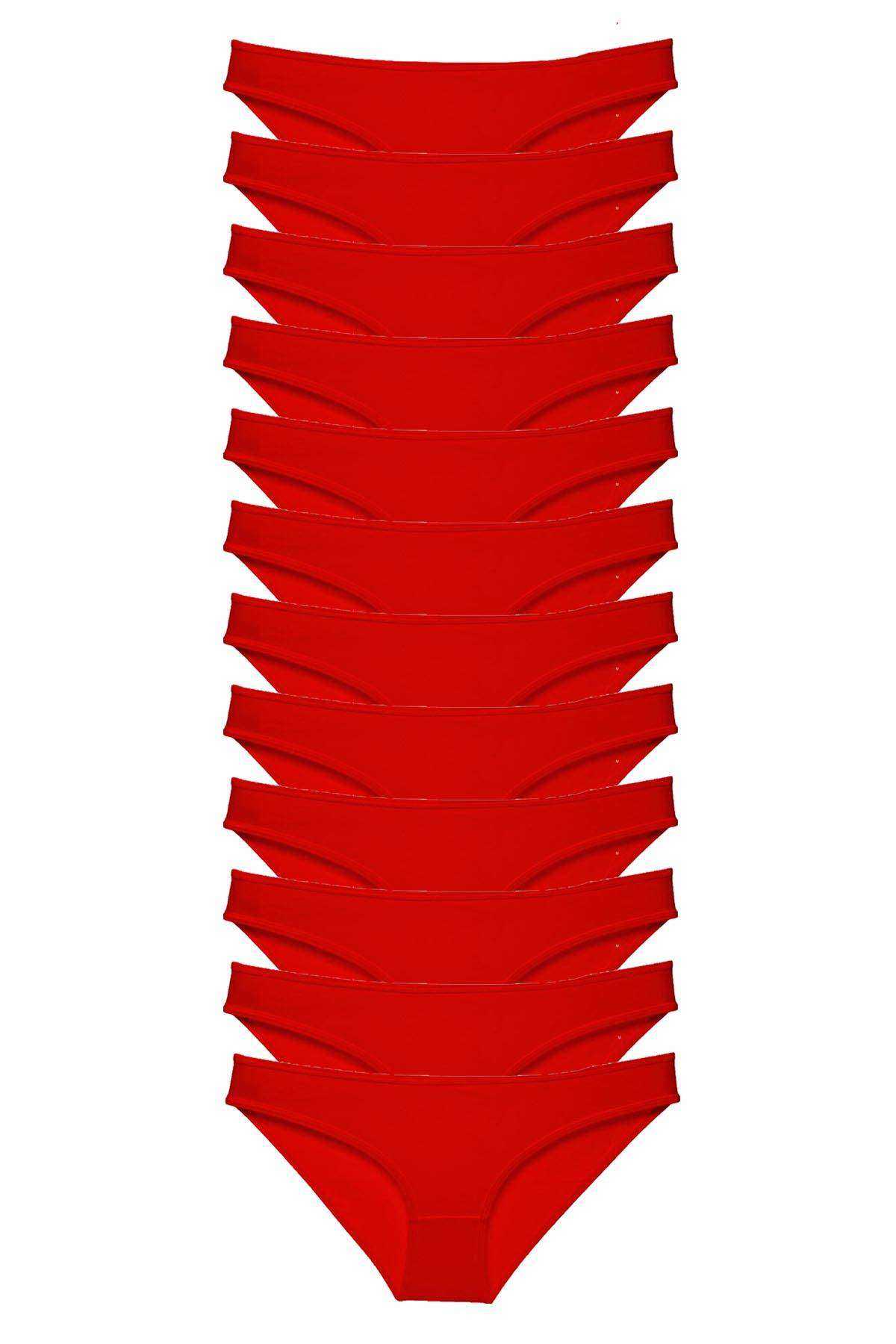 - 12 Adet Süper Eko Set Likralı Kadın Slip Külot Kırmızı
