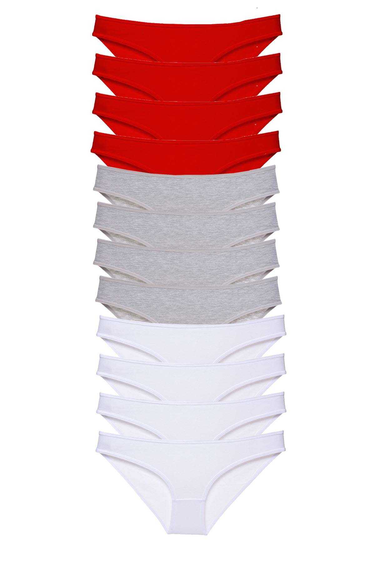 12 Adet Süper Eko Set Likralı Kadın Slip Külot Kırmızı Gri Beyaz