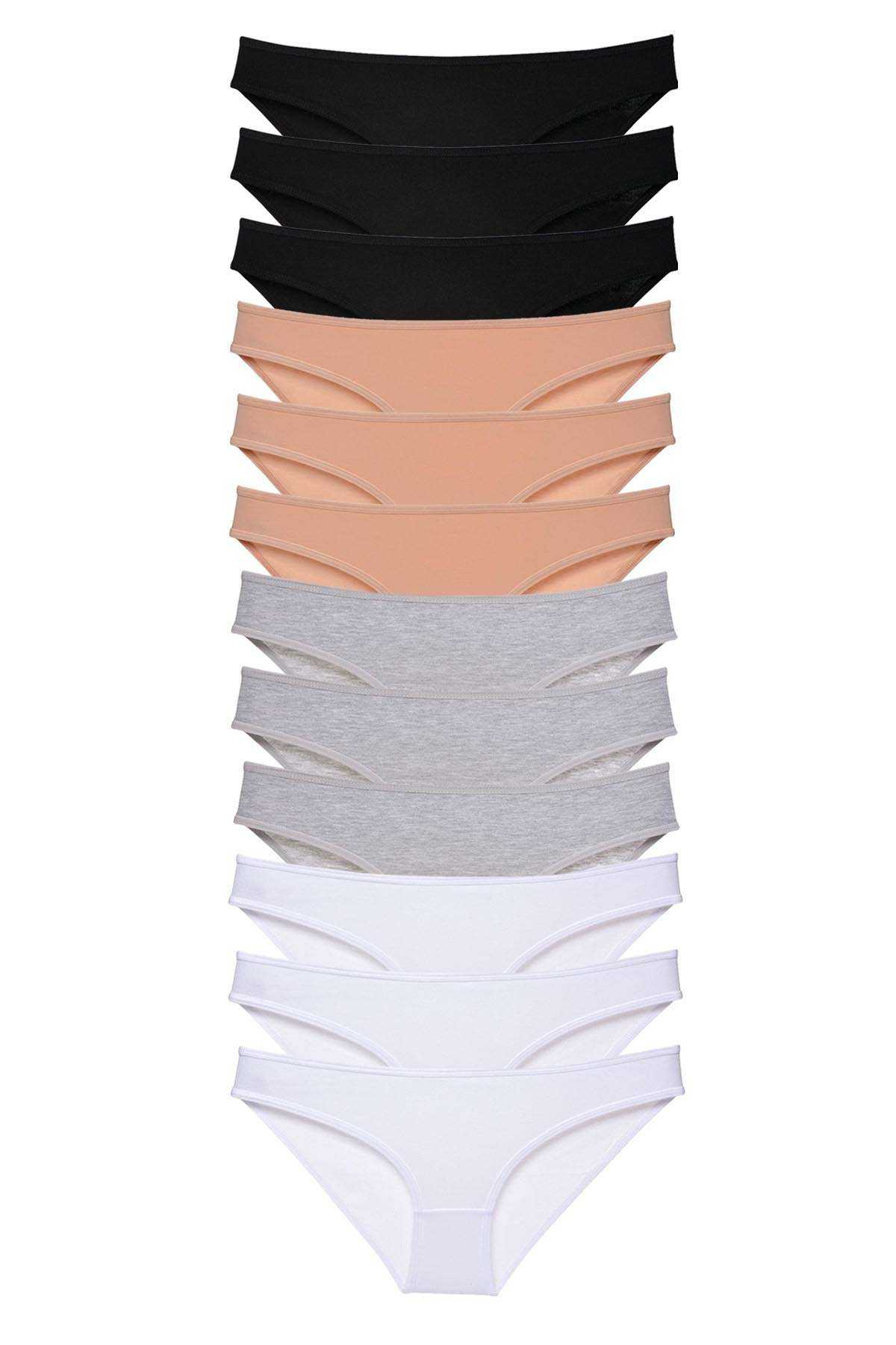 12 Adet Süper Eko Set Likralı Kadın Slip Külot Siyah Ten Gri Beyaz