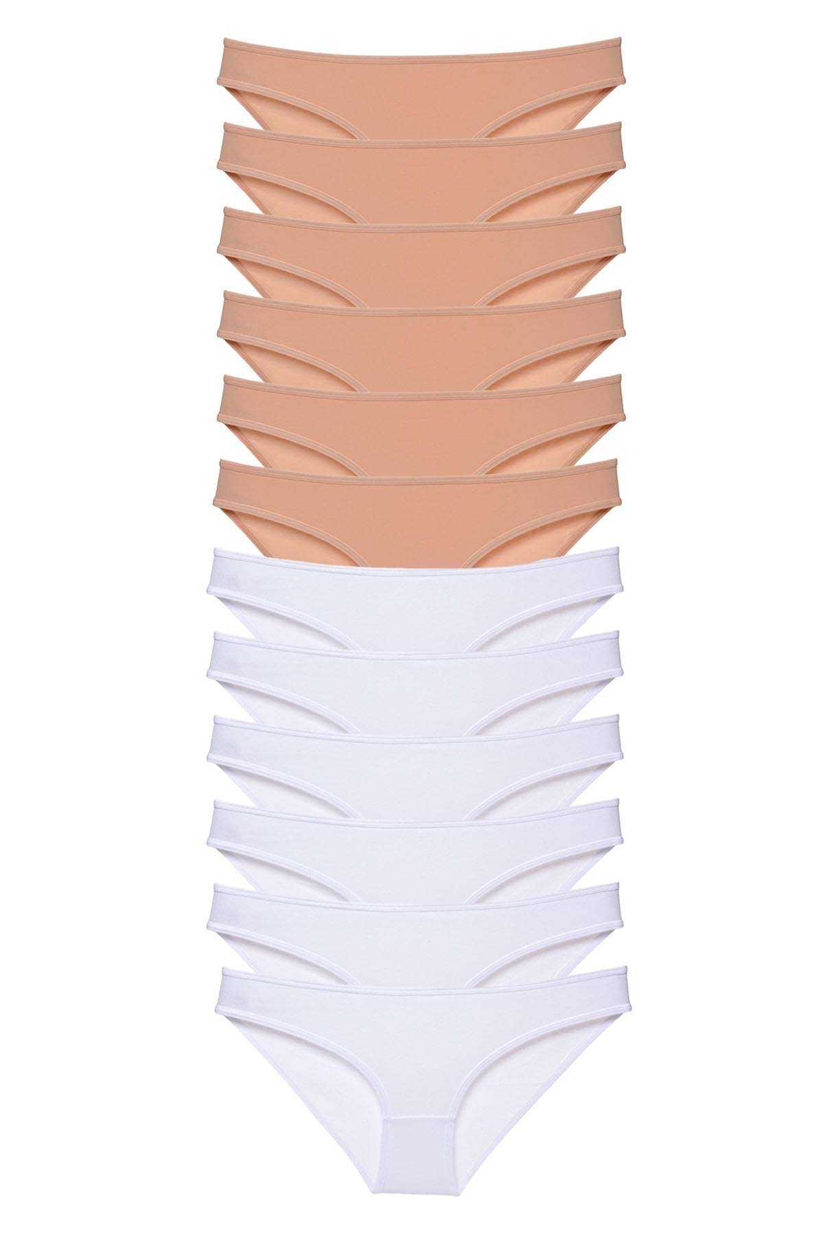 12 Adet Süper Eko Set Likralı Kadın Slip Külot Ten Beyaz