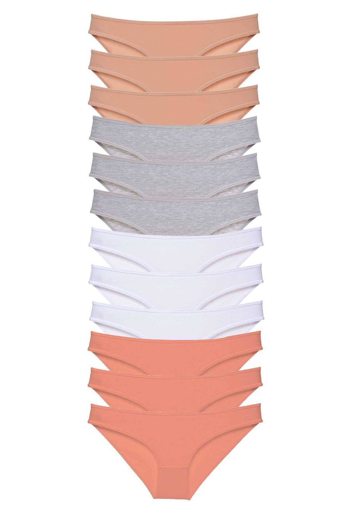 12 Adet Süper Eko Set Likralı Kadın Slip Külot Ten Gri Beyaz Pudra