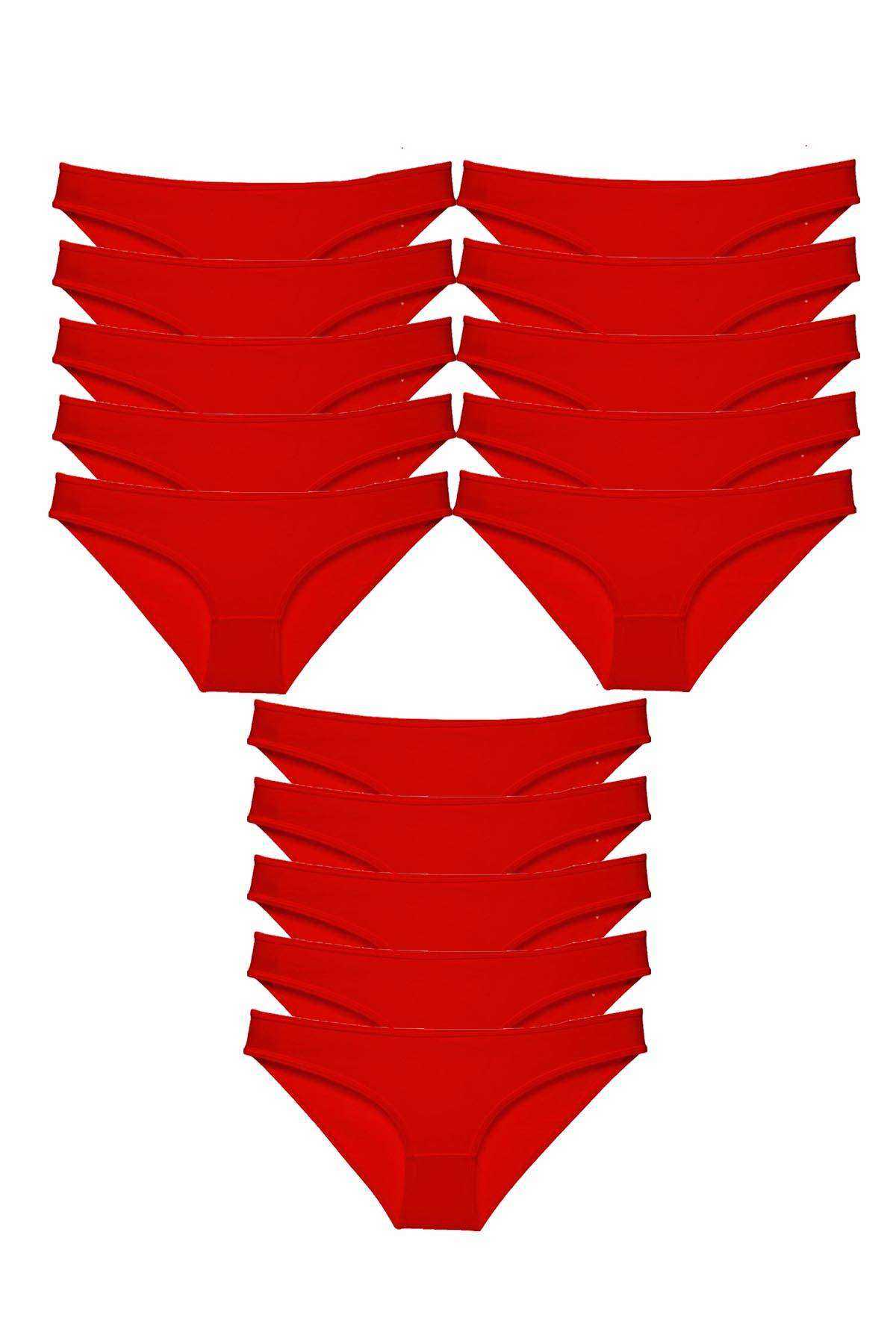 - 15 Adet Süper Eko Set Likralı Kadın Slip Külot Kırmızı