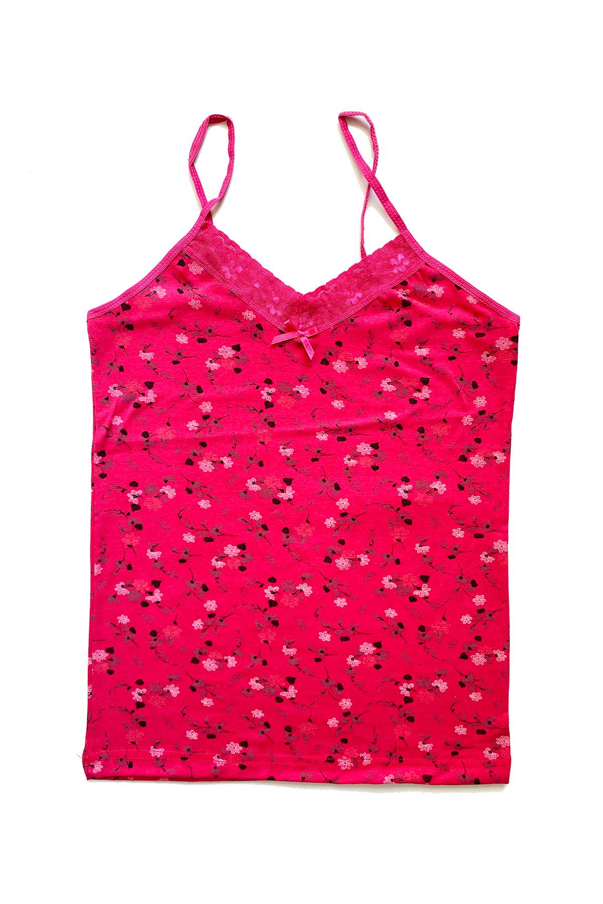 2 Adet Kadın Askılı Desenli Atlet Dantelli Empirme Pamuklu Penye D3-4