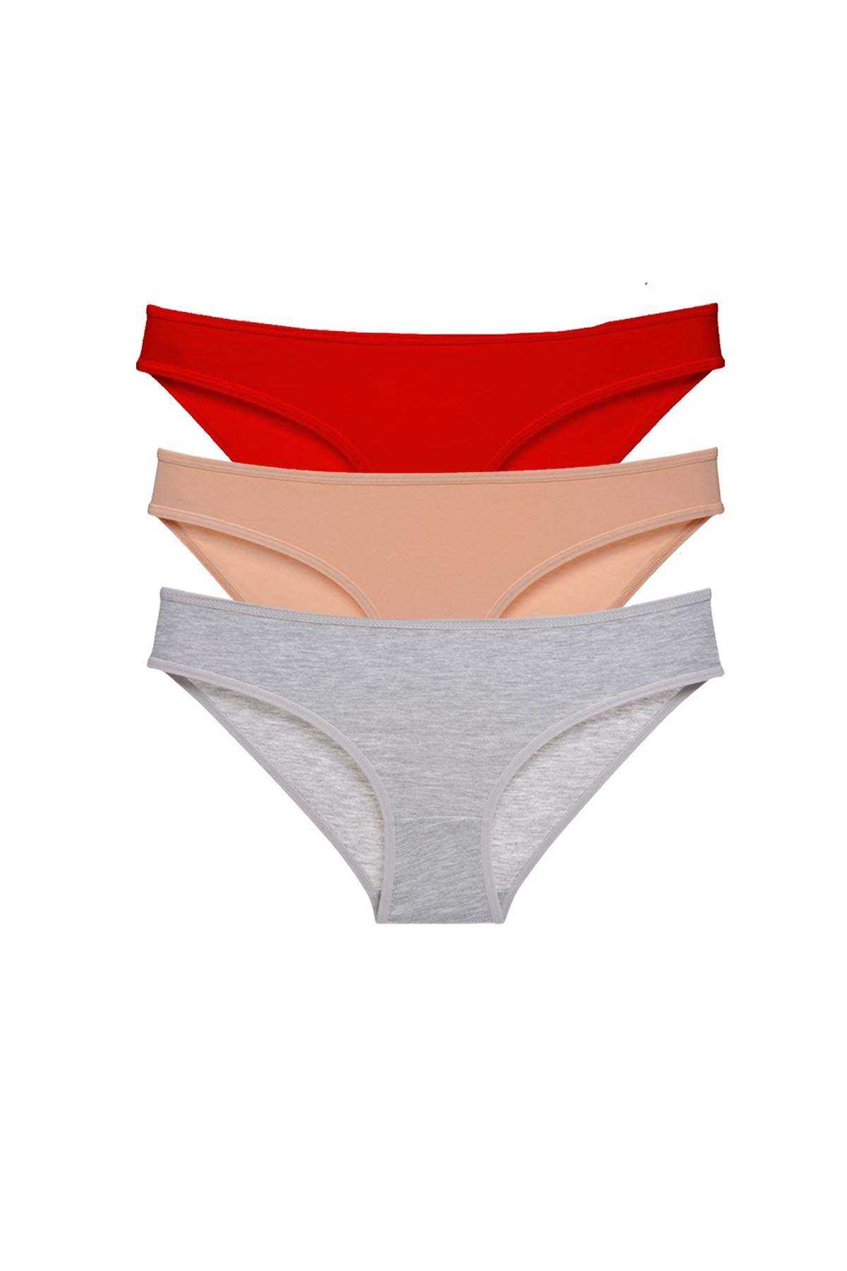 3 Adet Eko Set Likralı Kadın Slip Külot Kırmızı Ten Gri