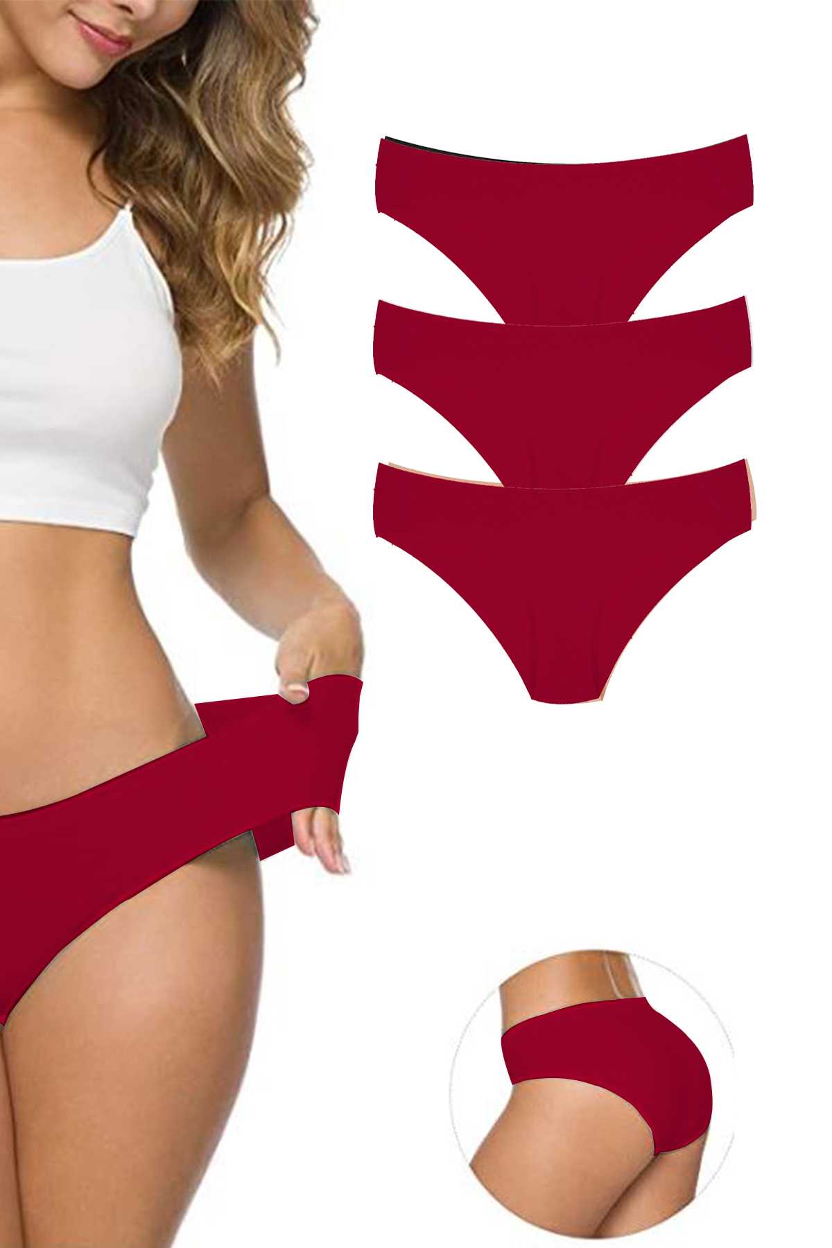 3 Adet Kadın Dikişsiz Lazer Kesim Esnek İz Yapmayan Külot Bordo