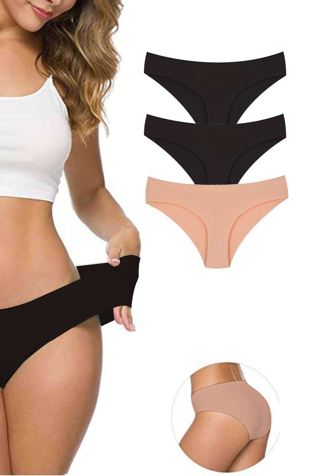 3 Adet Kadın Dikişsiz Lazer Kesim Esnek İz Yapmayan Külot S2