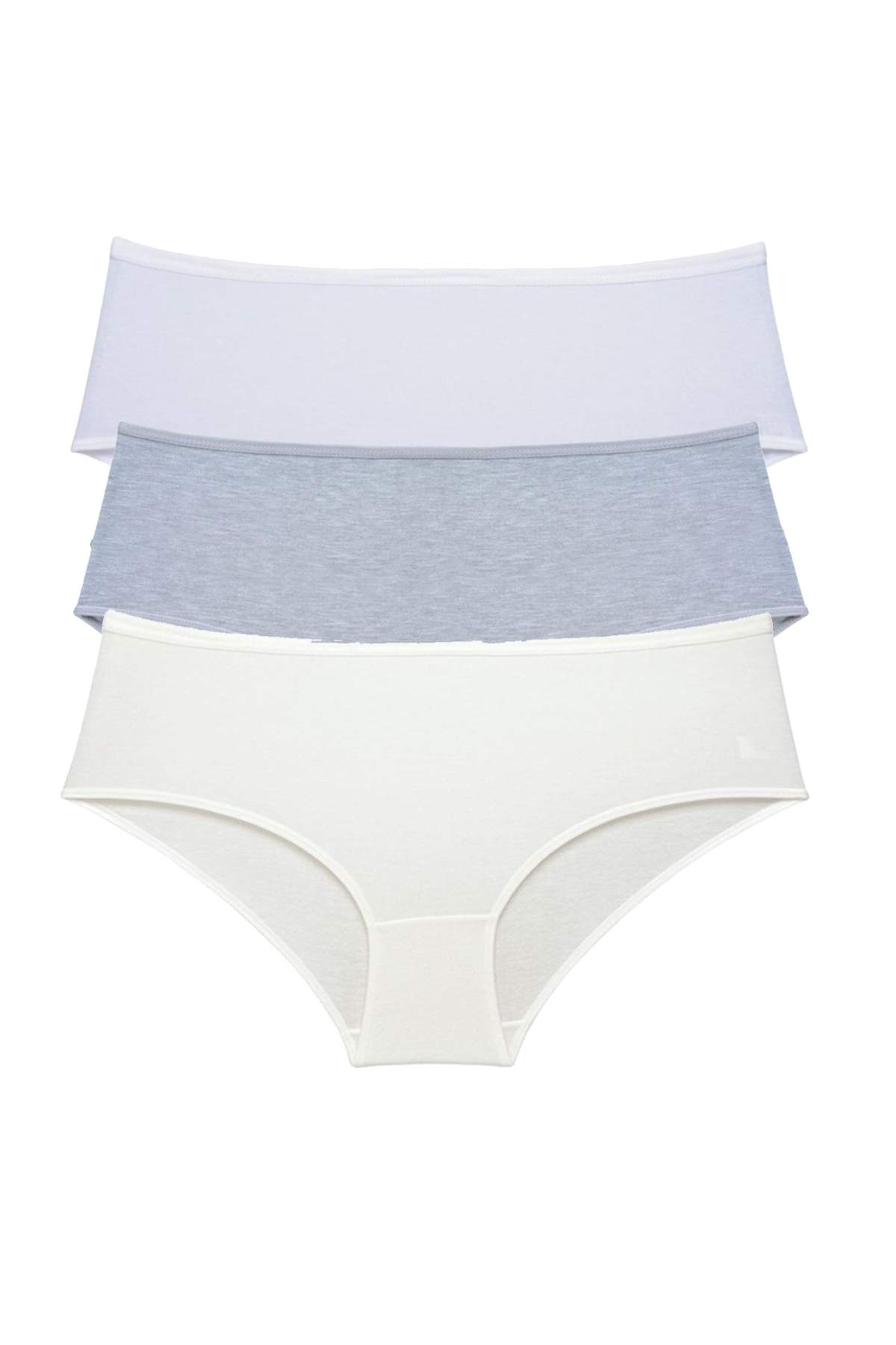- 3 Adet Kadın Yüksek Bel Bato Külot Beyaz Gri Krem