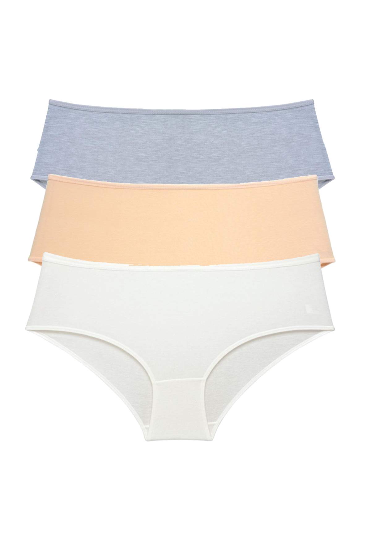 - 3 Adet Kadın Yüksek Bel Bato Külot Gri Ten Krem