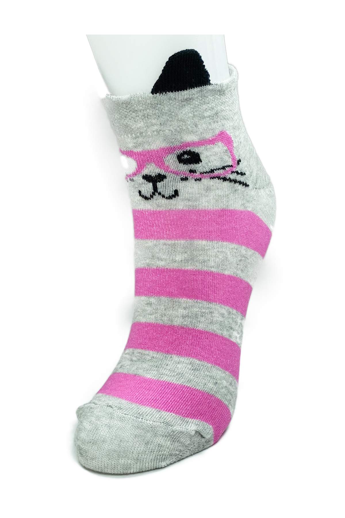 - 3 Çift Kedi Temalı 3 Boyut Kulaklı Pamuklu Esnek Kadın Bilek Çorap