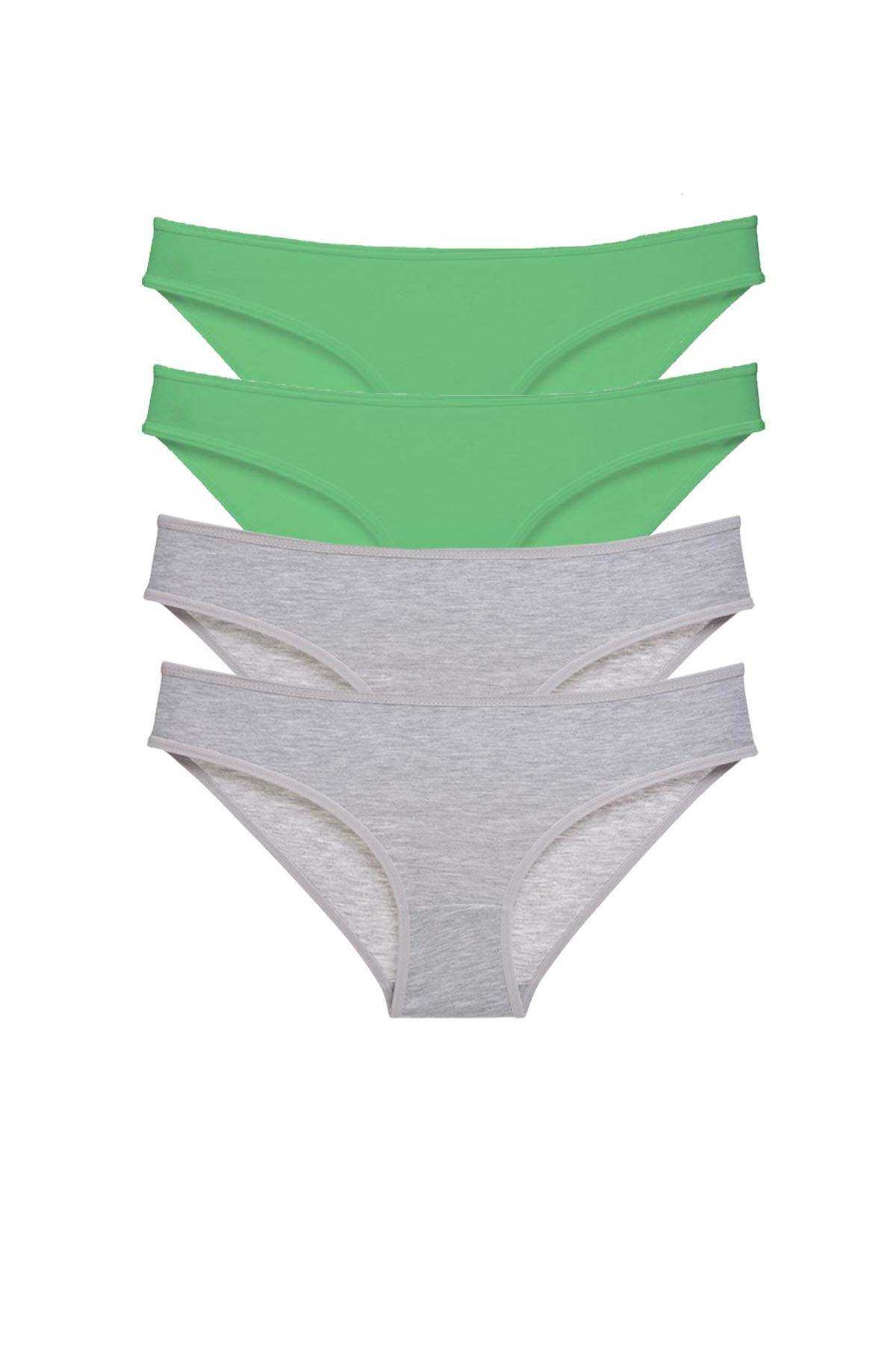- 4 Adet Süper Eko Set Likralı Kadın Slip Külot Yeşil Gri