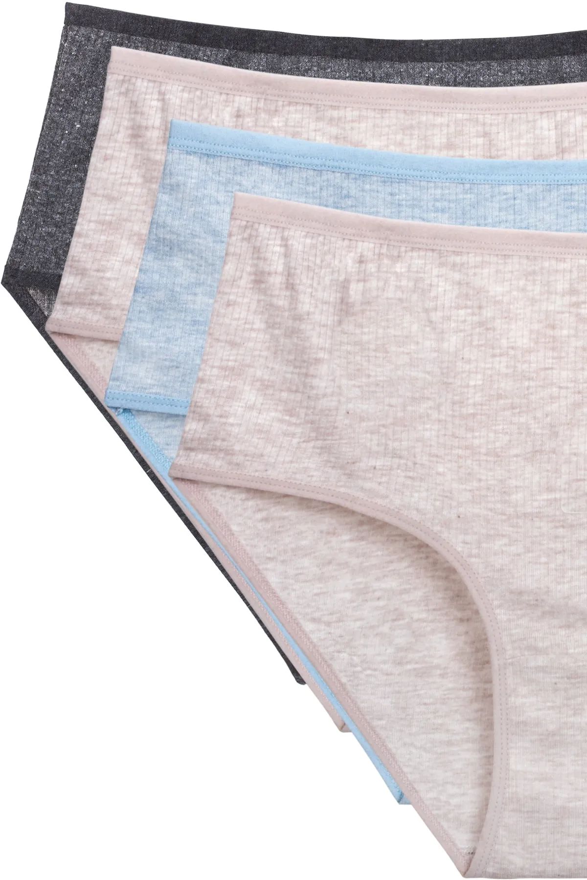 4'lü Yeni Seri Renkli Yüksek Bel Fitilli Ribana Bato Külot Pudra Gri Turquaz