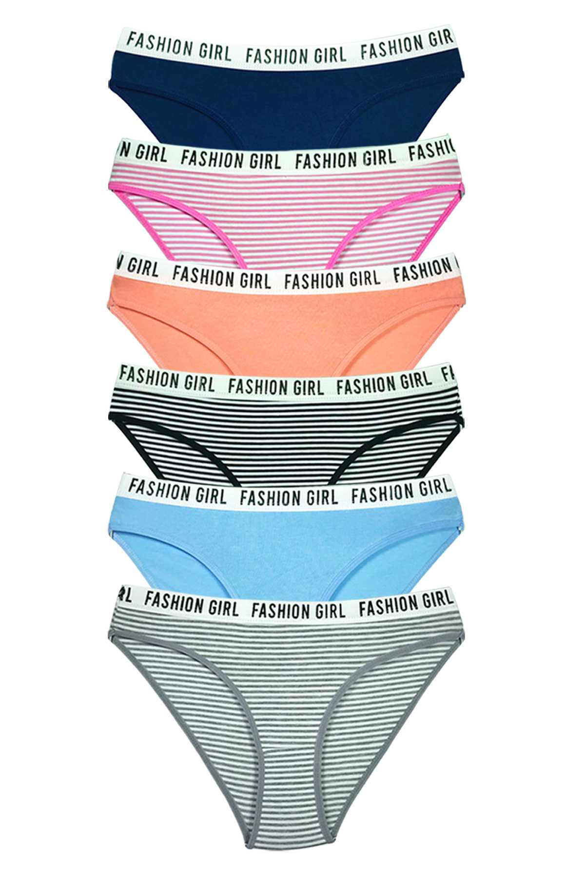 - 6 Adet Beli Yazılı Lastik Pamuk Kadın Külot