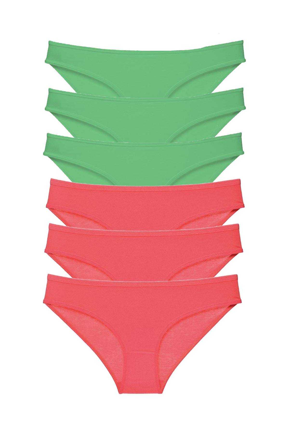 - 6 Adet Eko Set Likralı Kadın Slip Külot Yeşil Fuşya