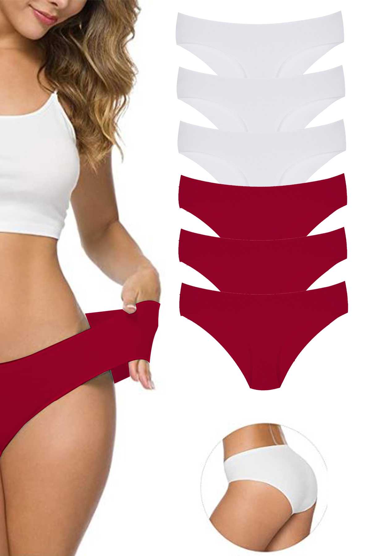 6 Adet Kadın Dikişsiz Lazer Kesim Esnek İz Yapmayan Külot S6