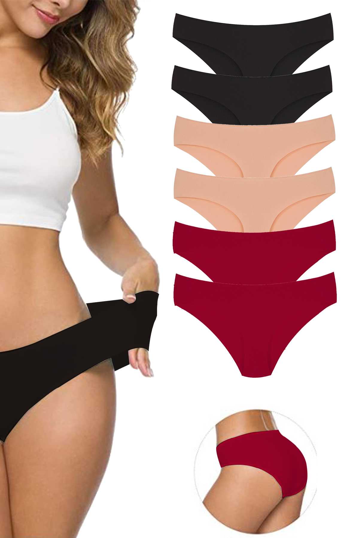 6 Adet Kadın Dikişsiz Lazer Kesim Esnek İz Yapmayan Külot S9