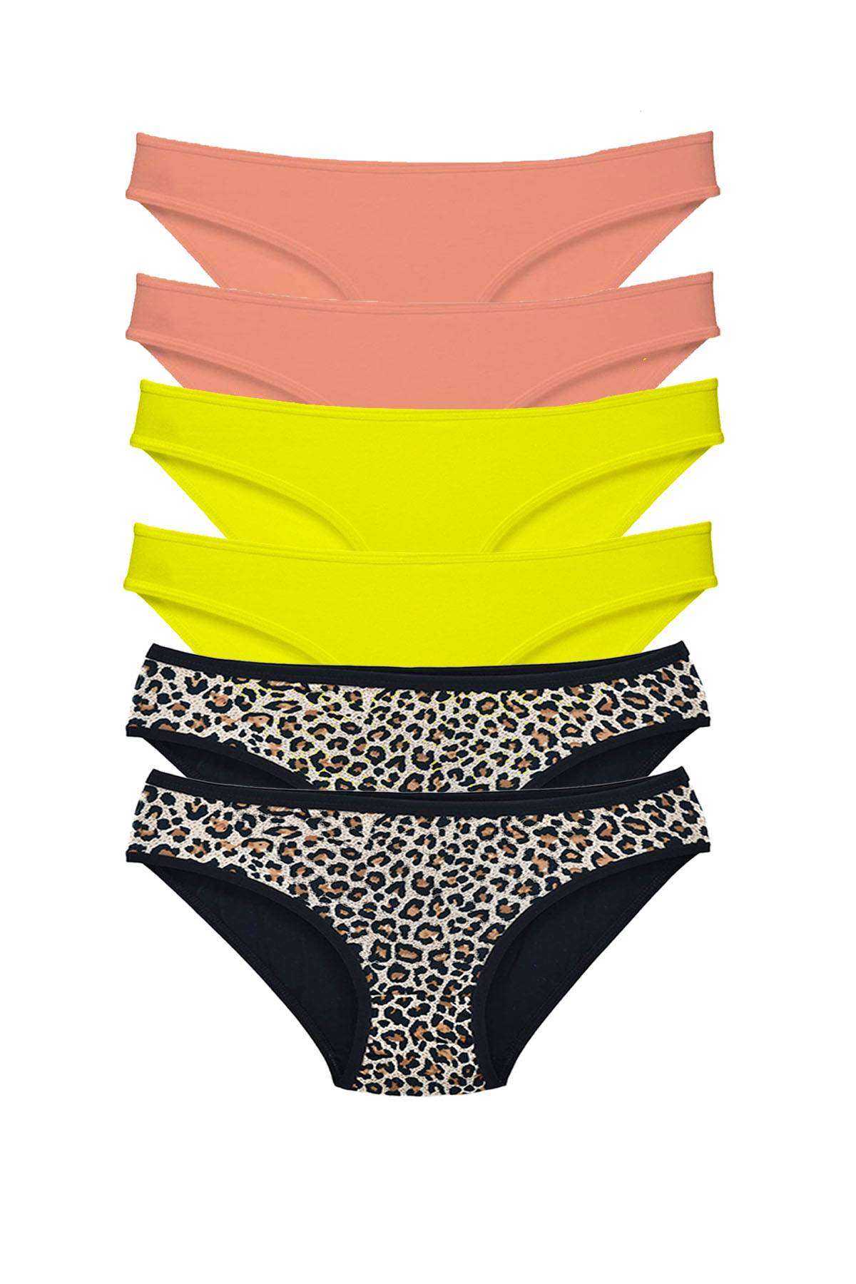 - 6 Adet Likralı Kadın Slip Külot Leopar Pudra Sarı
