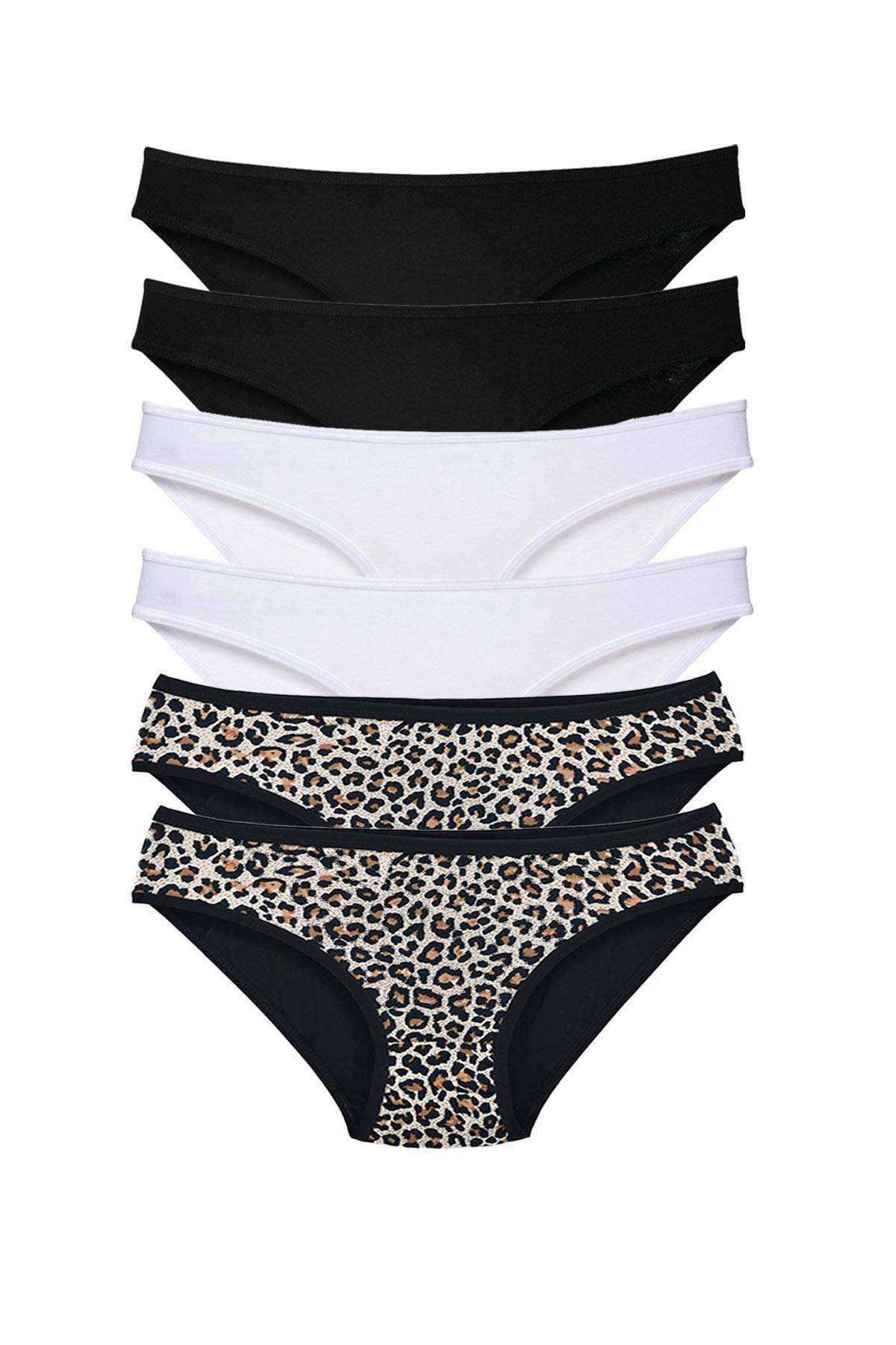 6 Adet Likralı Kadın Slip Külot Leopar Siyah Beyaz