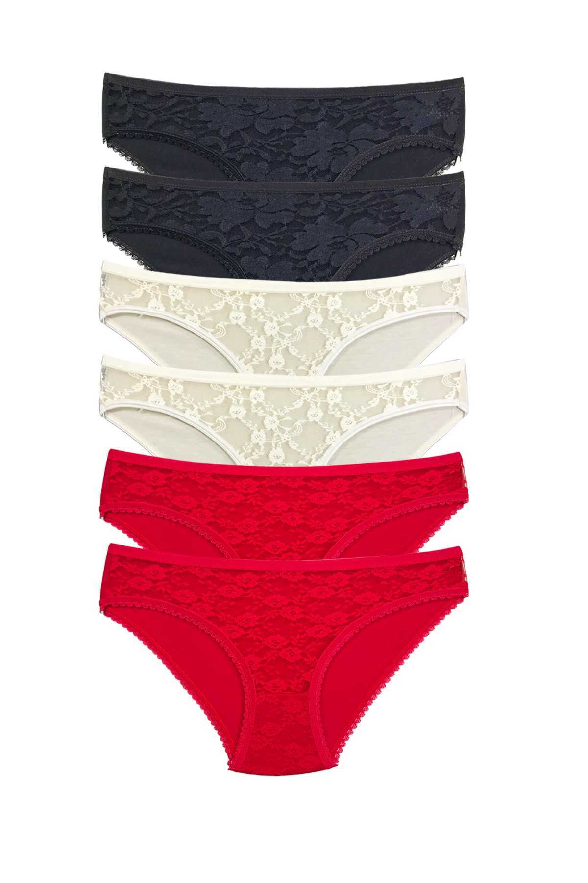 - 6 Adet Önü Dantelli Transparan Kadın Slip Külot S116