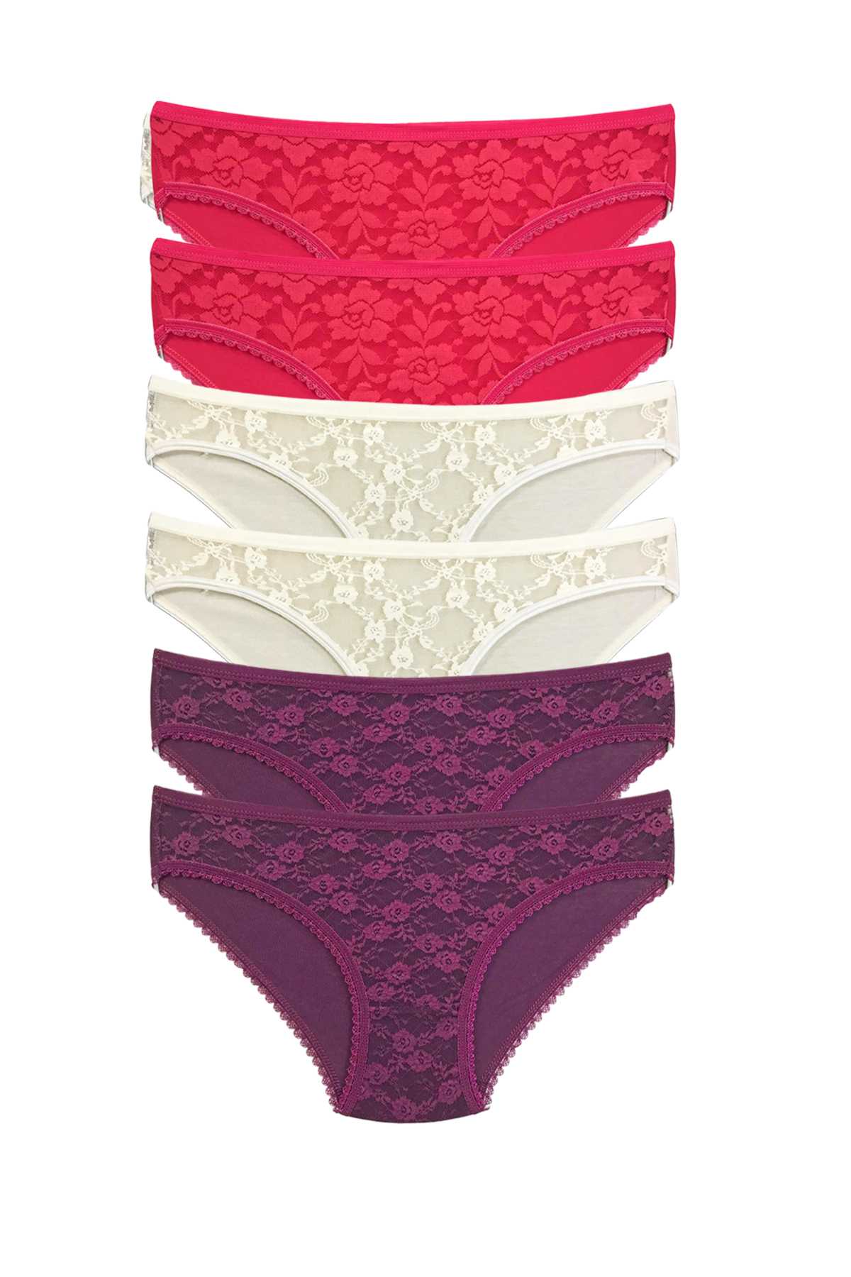 - 6 Adet Önü Dantelli Transparan Kadın Slip Külot S130