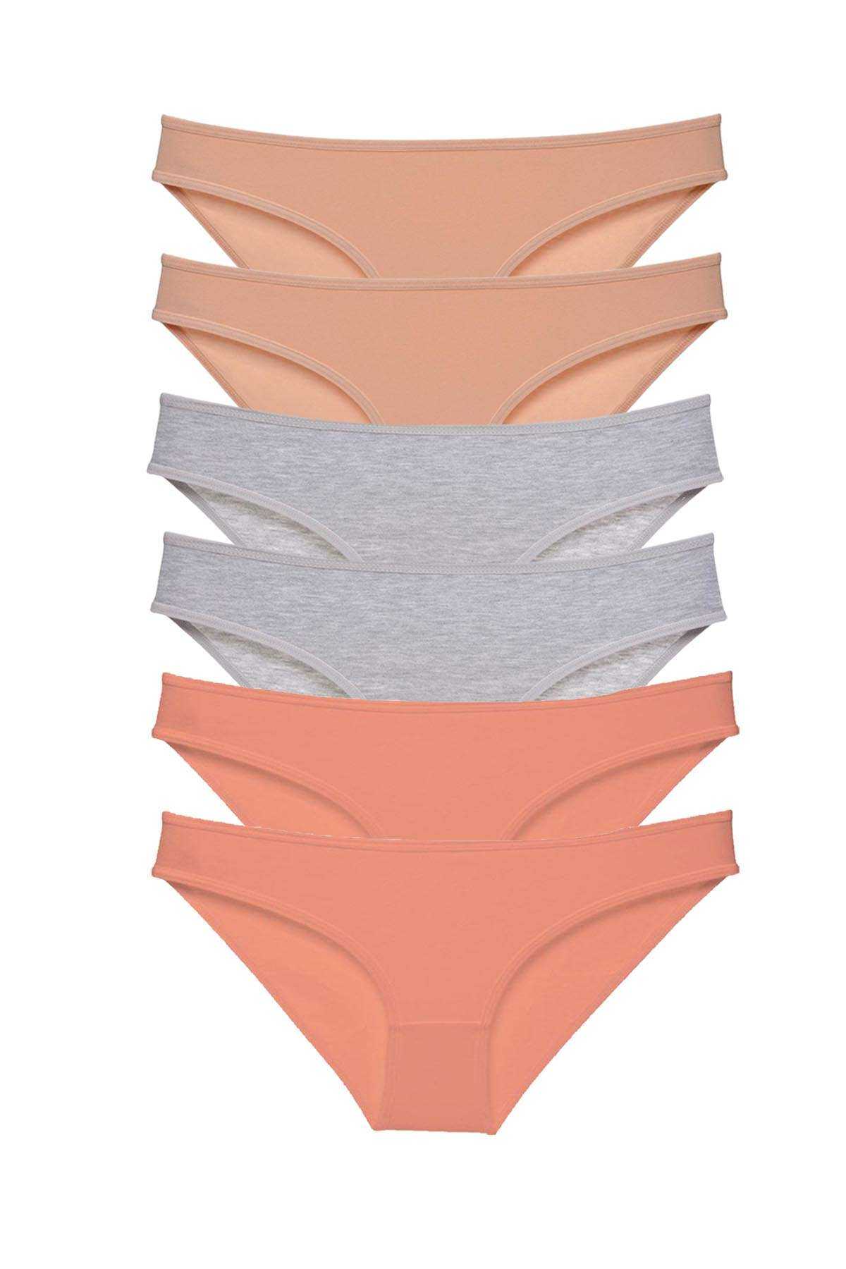 6 Adet Süper Eko Set Likralı Kadın Slip Külot Ten Gri Pudra