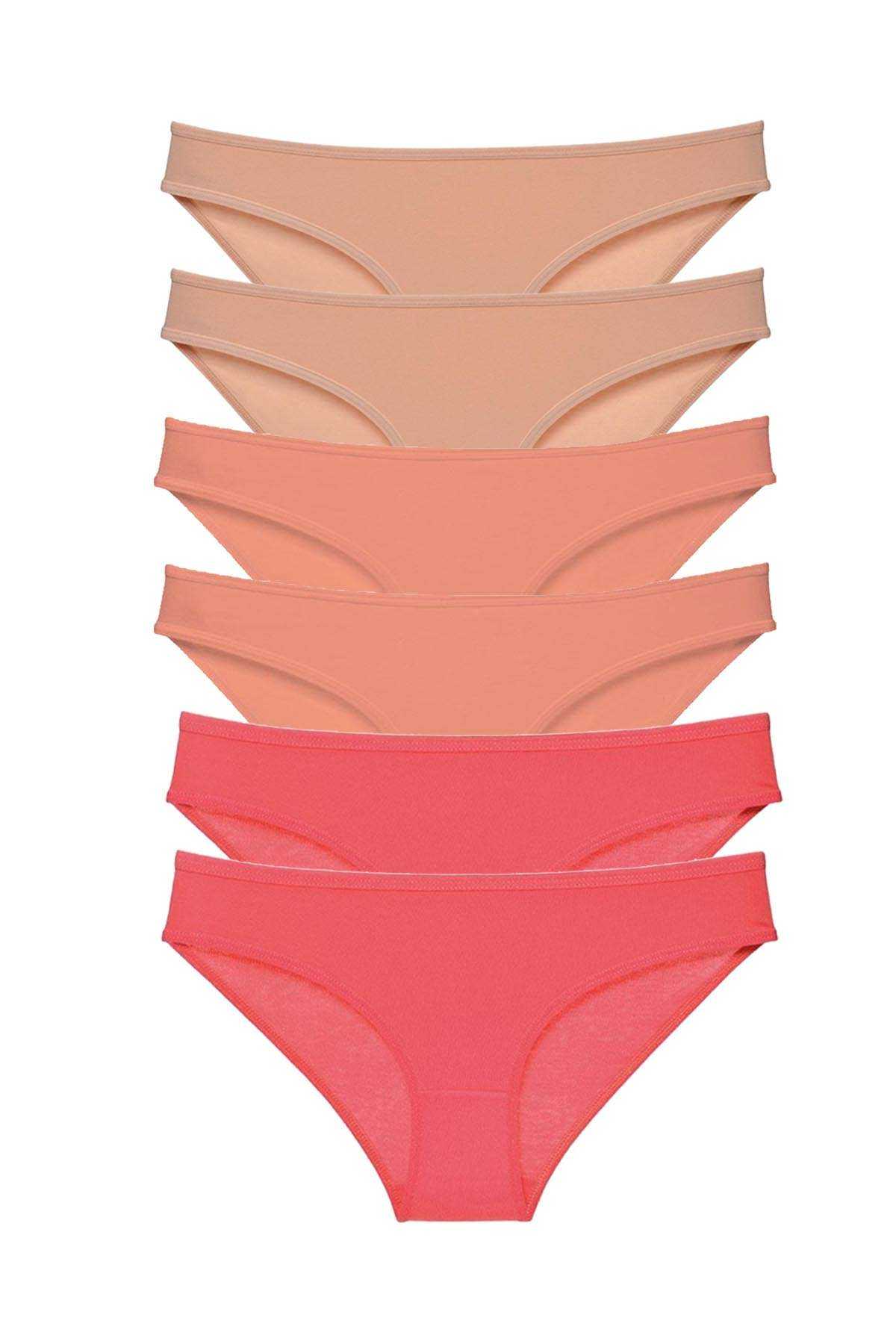 6 Adet Süper Eko Set Likralı Kadın Slip Külot Ten Pudra Fuşya