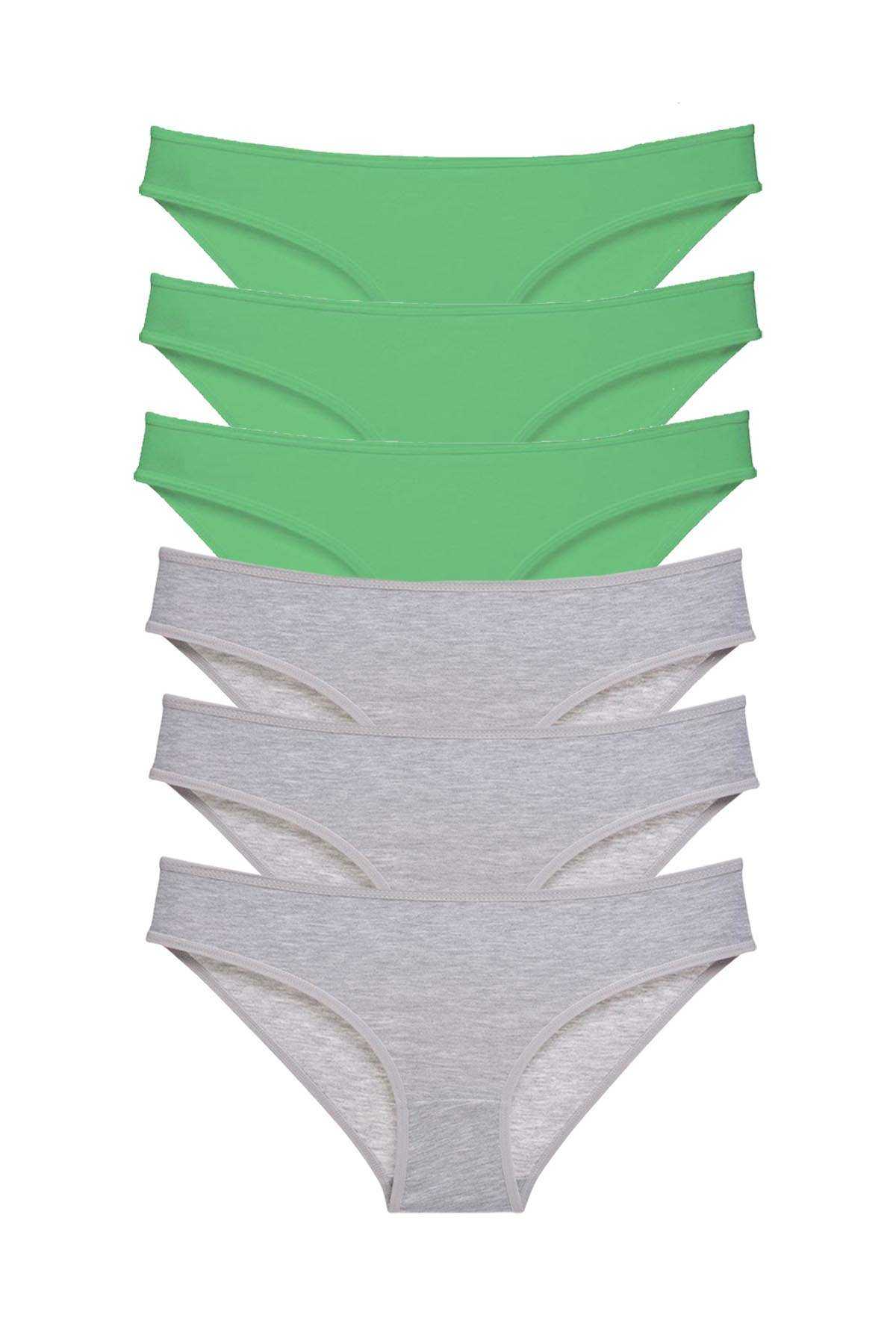 - 6 Adet Süper Eko Set Likralı Kadın Slip Külot Yeşil Gri