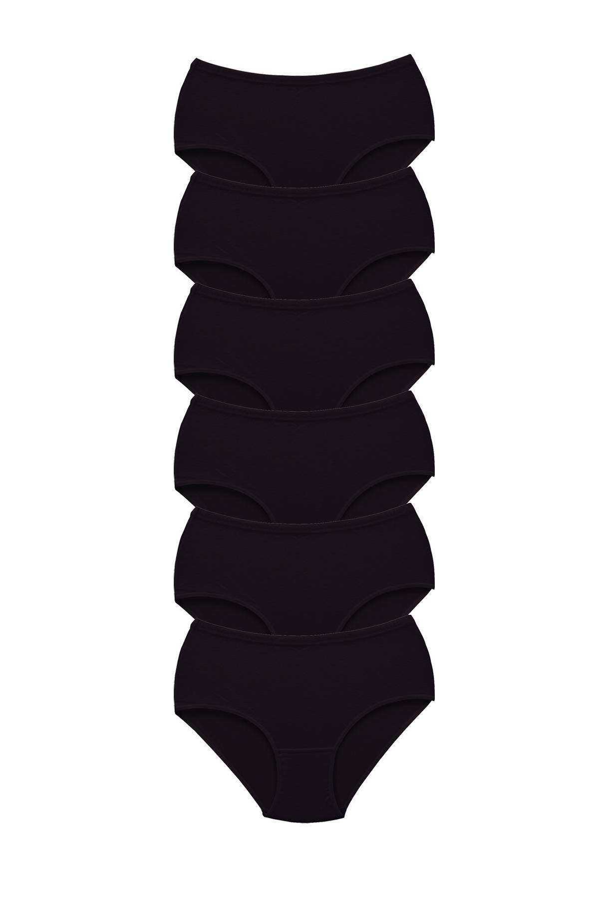 6 Adet Tutku Kadın Yüksek Bel Bato Kalın Lastik Külot Siyah