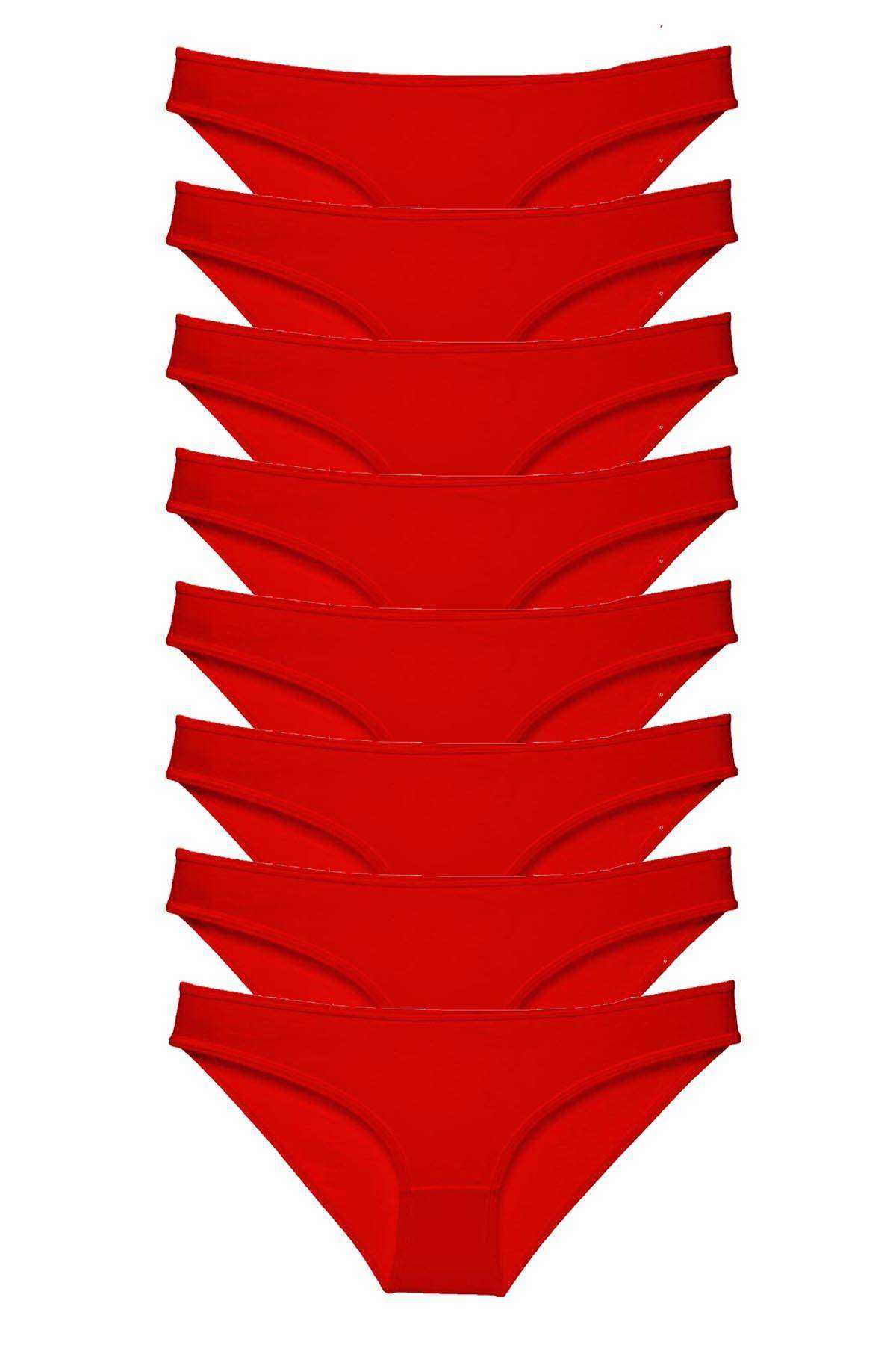 - 8 Adet Süper Eko Set Likralı Kadın Slip Külot Kırmızı