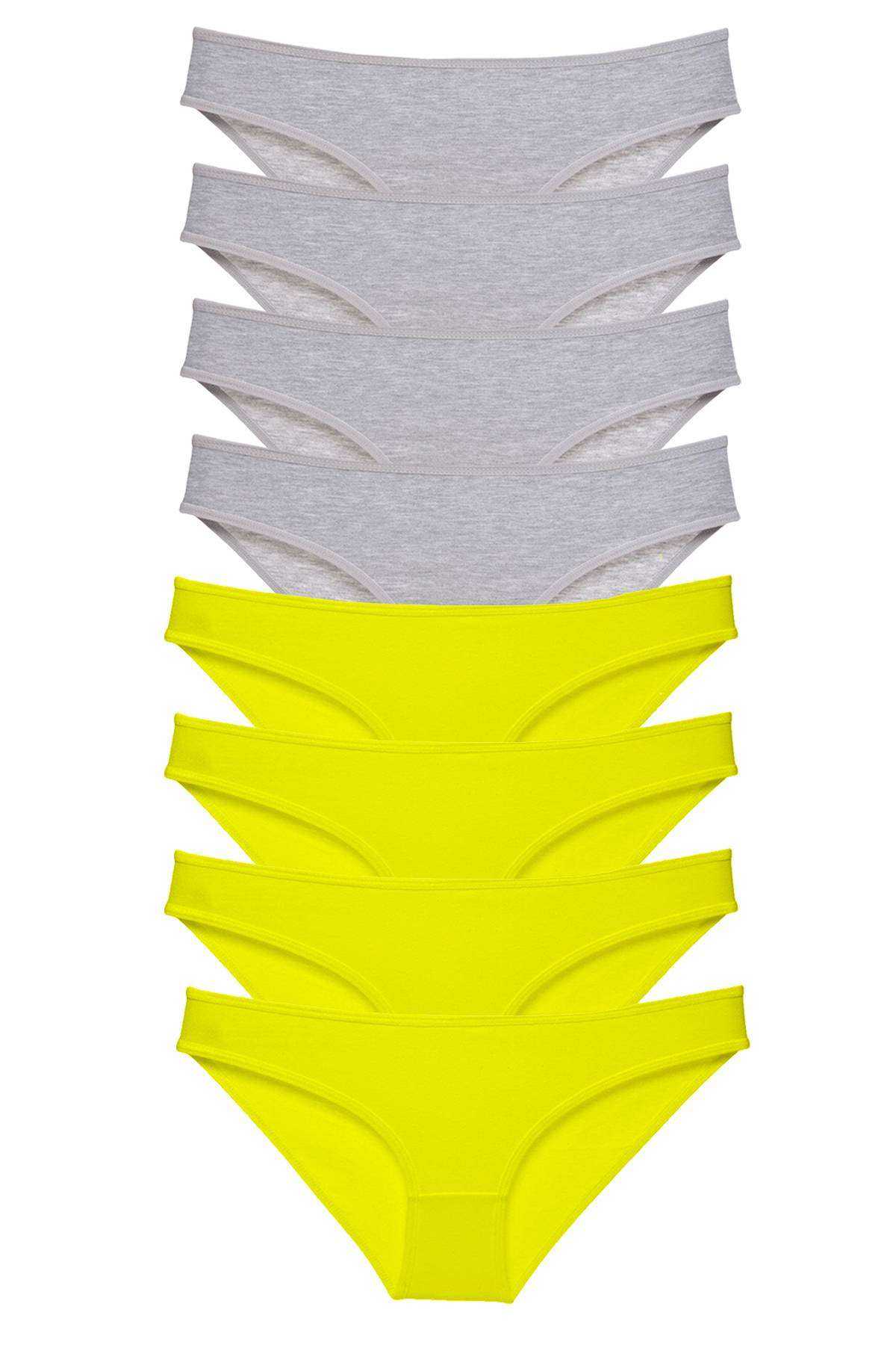 - 8 Adet Süper Eko Set Likralı Kadın Slip Külot Sarı Gri