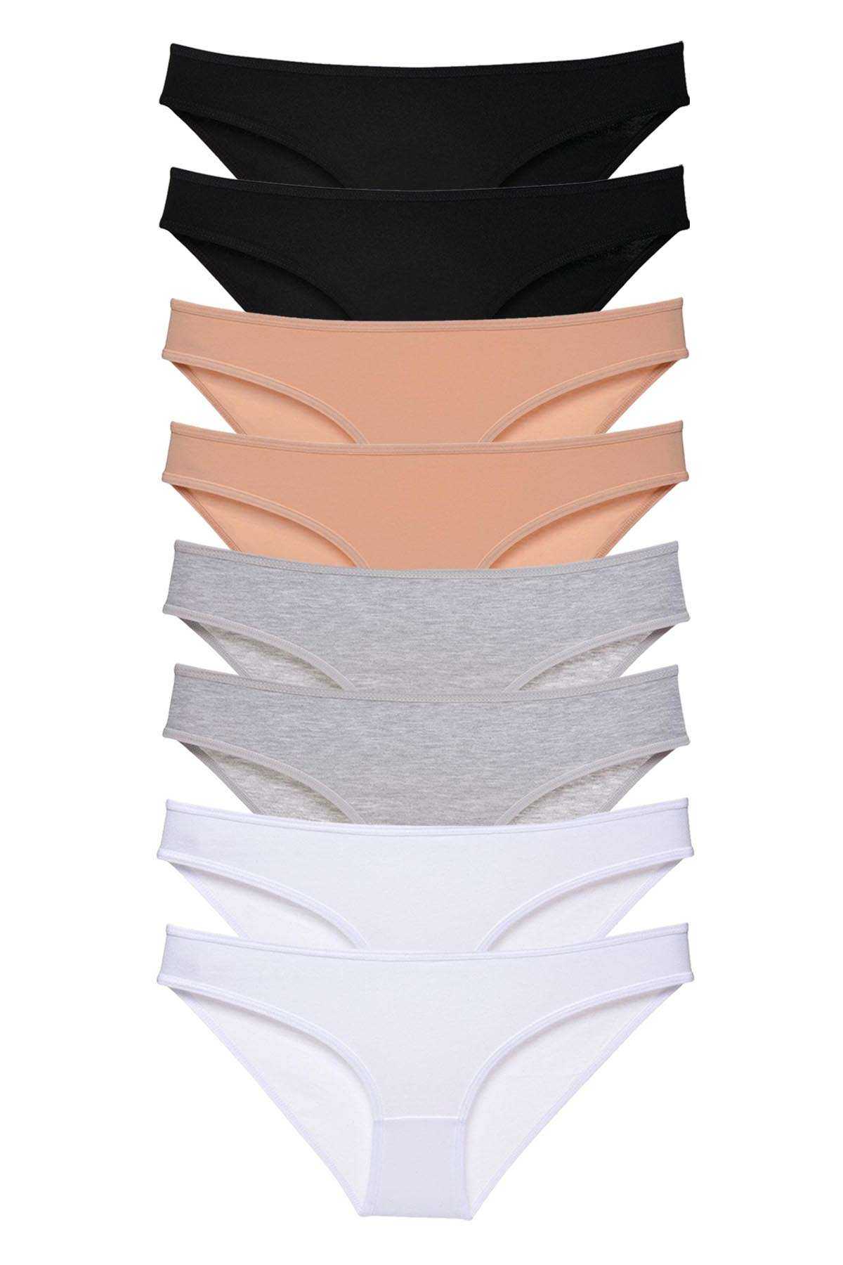 8 Adet Süper Eko Set Likralı Kadın Slip Külot Siyah Ten Gri Beyaz