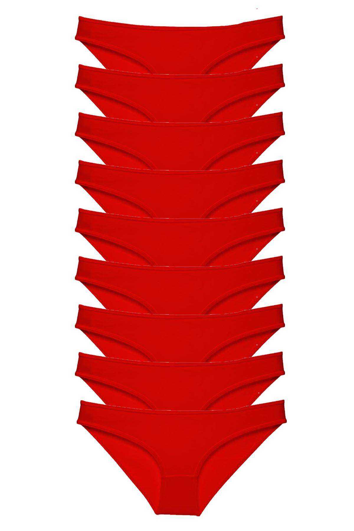 - 9 Adet Süper Eko Set Likralı Kadın Slip Külot Kırmızı
