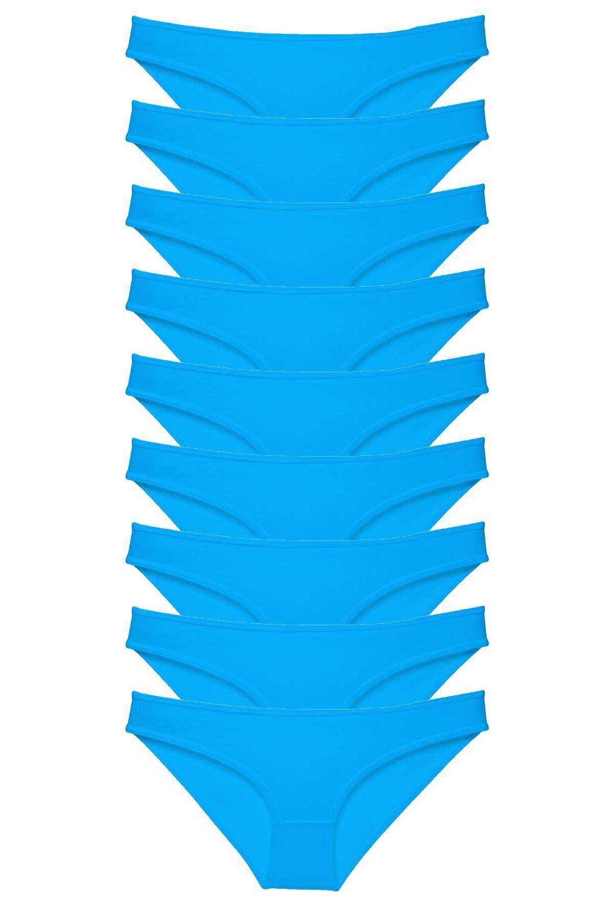 - 9 Adet Süper Eko Set Likralı Kadın Slip Külot Mavi